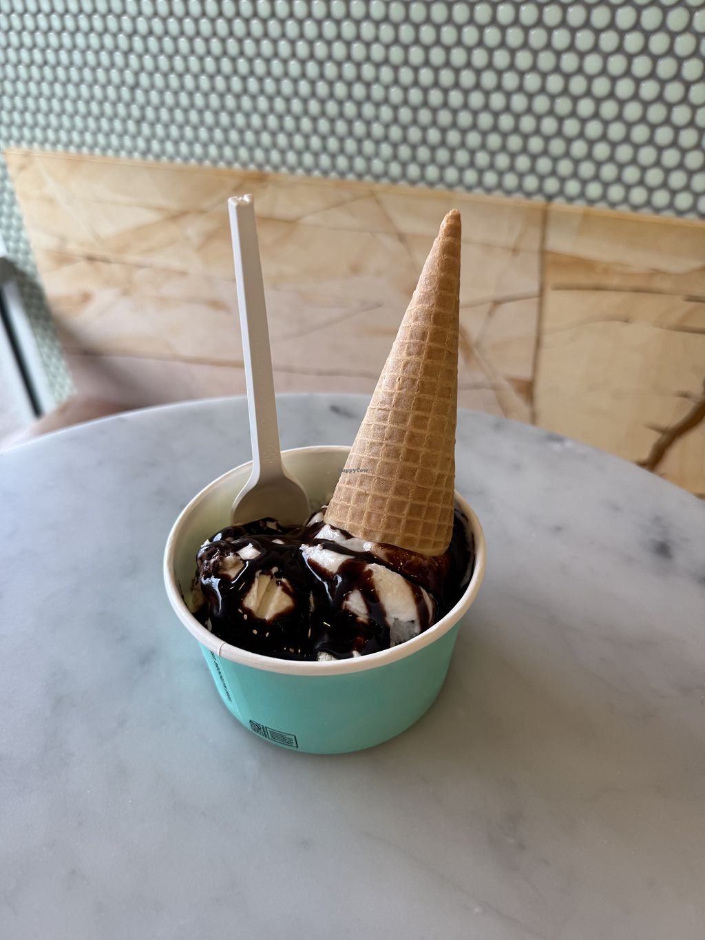 It’s so awesome they have plenty of vegan options. Unfortunate for those allergic to cashews in which all the vegan ice cream flavors have a cashew base that I saw. Very friendly staff changed gloves for me. They do have vegan chocolate chip cookies as well with no cashews.
