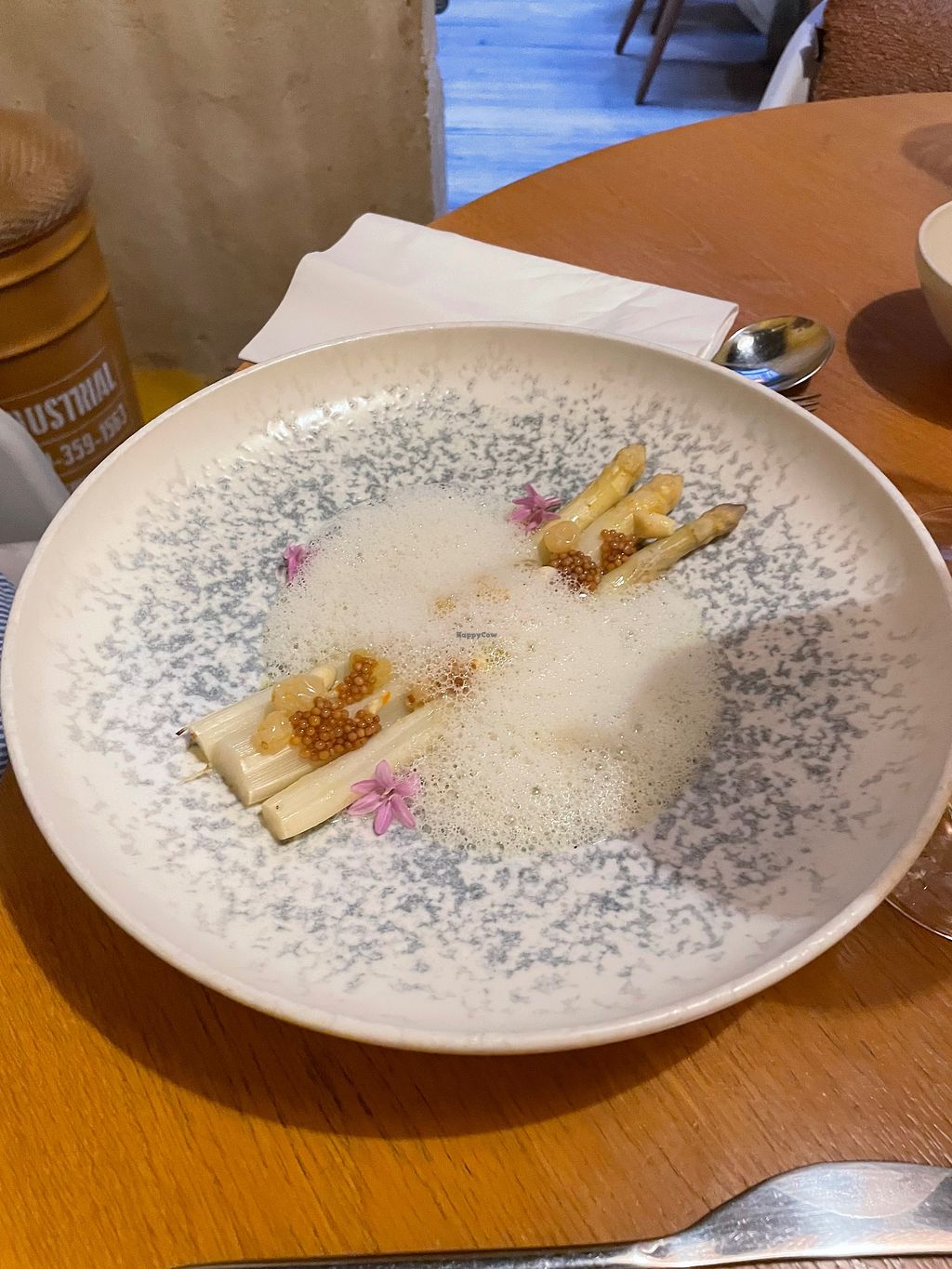 This is an outstanding gourmet restaurant which is primarily vegan, except for the cheese course, and on the current menu, one of the starters, namely the leek entrée whose émulsion fumée contains egg.