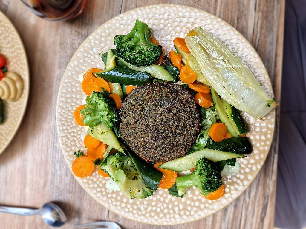 Looked very healthy, but tasted really good. Even though I am more the Fast Food Vegan, I enjoyed the Falafel and steamed Veggies on creme.