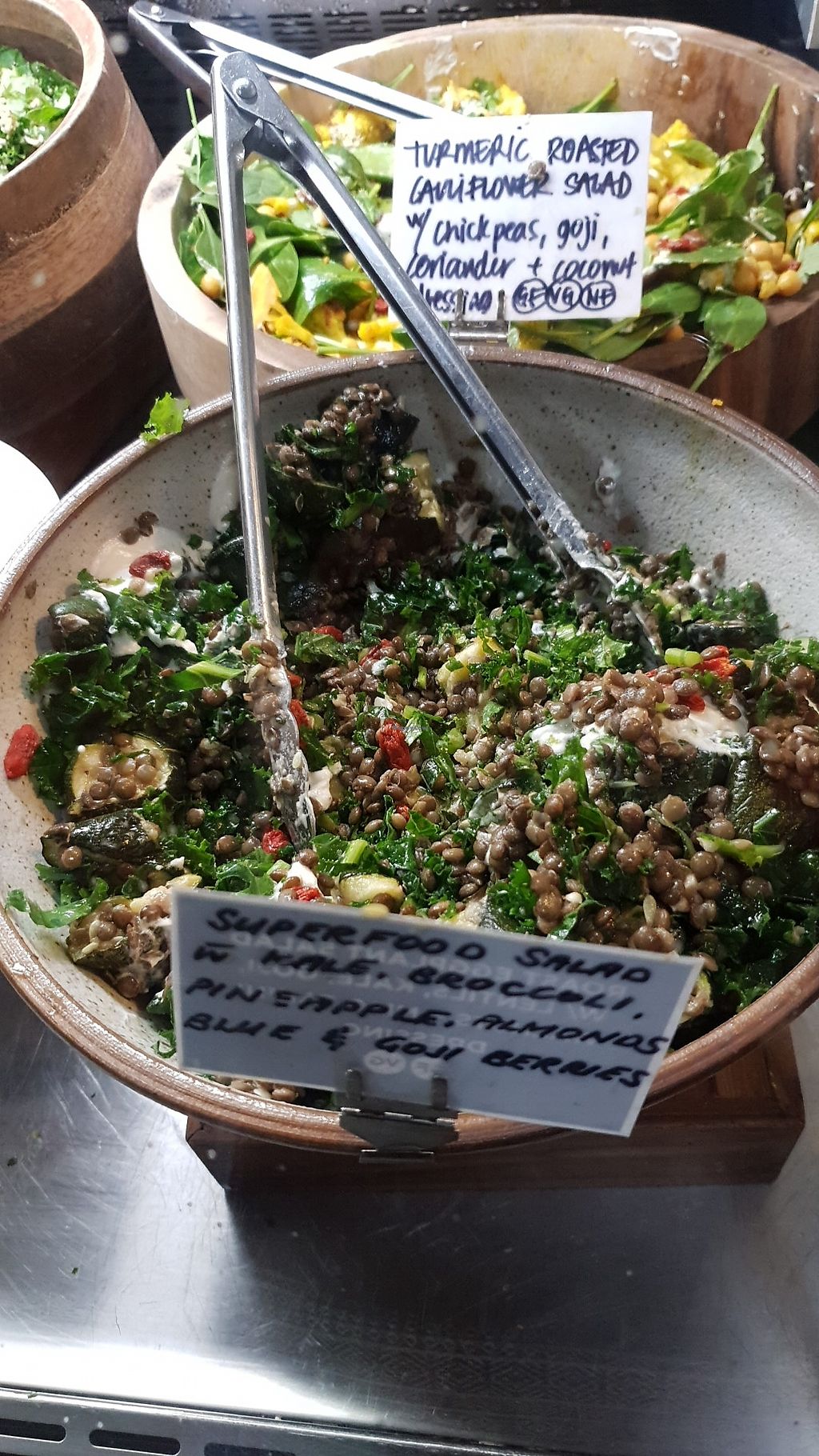 Plenty variety. Wholesome yummy food. Nice atmosphere. Friendly staff. Clean kitchen. My favourite is the granola. Fresh juices and lots of tarts, different salads and raw deserts.