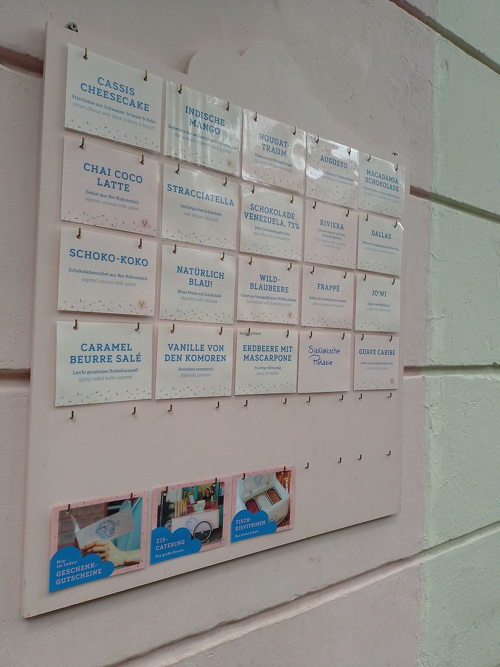 In summer I often get ice cream here. They do serve all-time classics like vanilla and chocolate but always with highest quality ingredients and sometimes with a little twist. Like adding Basil or Kardamom. They also have flavour combinations like Blueberry Cheesecake or Ipanema style cocktail as ice cream.