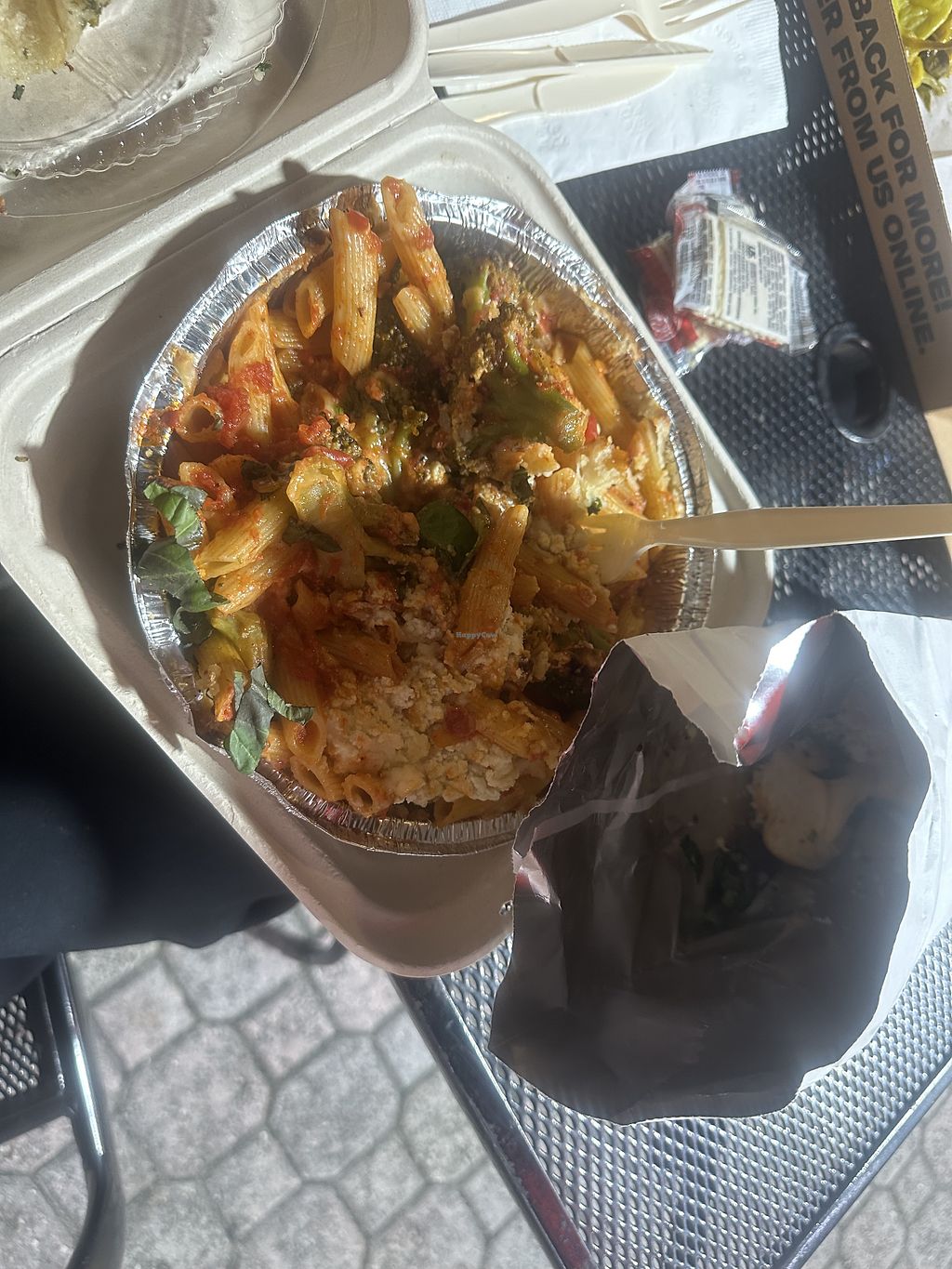 Forgot to take a photo before digging in! Sorry! Vegan baked ziti, gar…