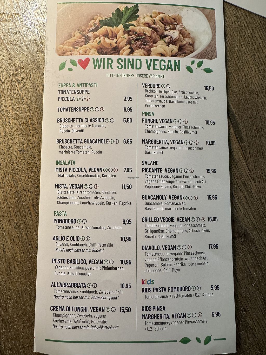 Vegan menu