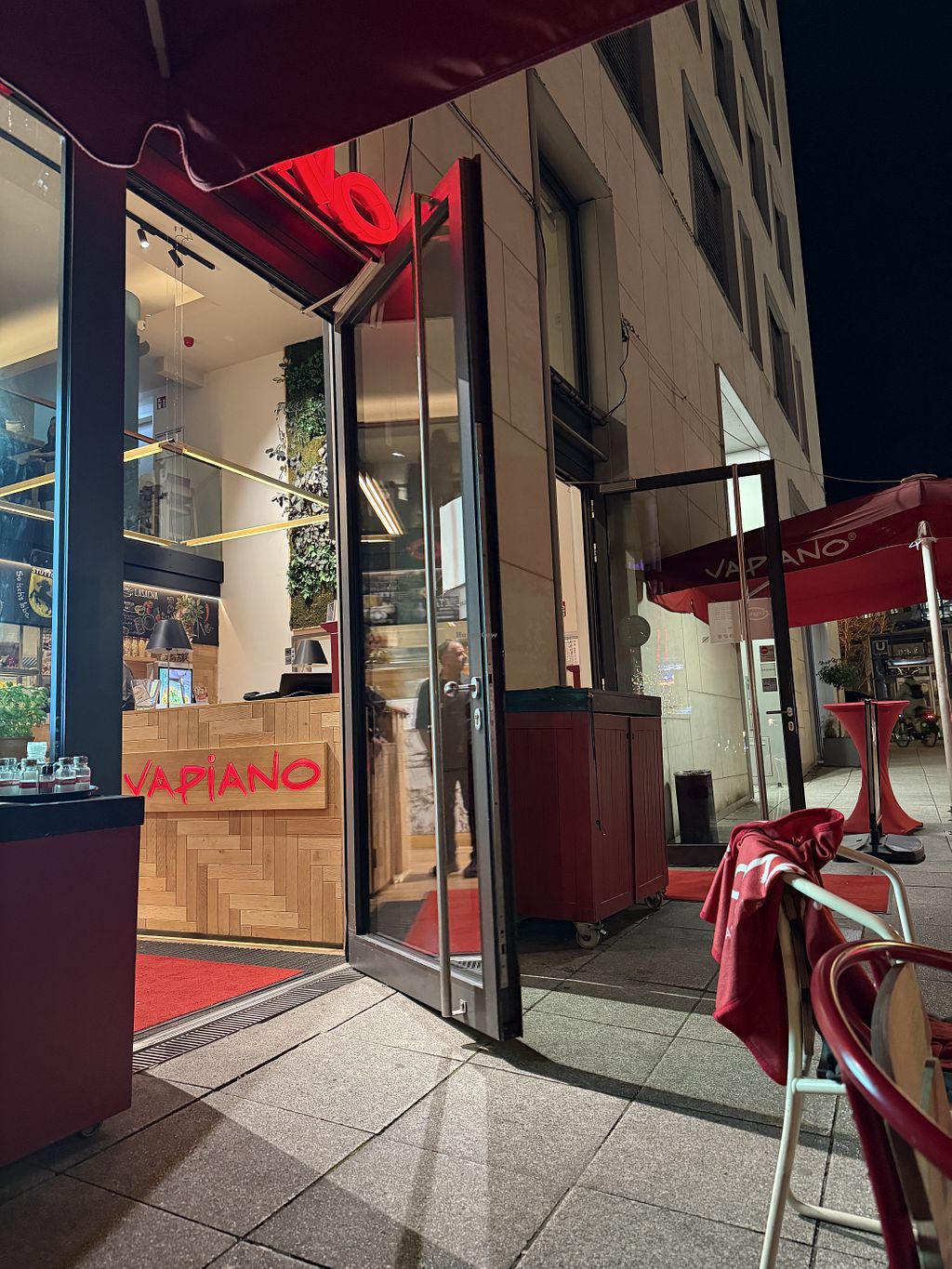 Serves meat, vegan options available. German-based restaurant chain & franchise operating branches globally, some with open kitchens where you see the cooks making the orders. Offers casual-style Italian food menu of pasta, pizza, salad, risotto, starter, and dessert selections. Vegan options are labeled with examples such as bruschetta, tomato soup, spaghetti or penne in tomato sauce, and ratatouille. Has vegan Parmesan and mozzarella options. Pizza dough confirmed vegan by Vapiano, Nov 2019. Reported open March 2022. Open Mon-Thu 12:00-21:00, Fri-Sat 12:00-22:00, Sun 12:00-21:00.