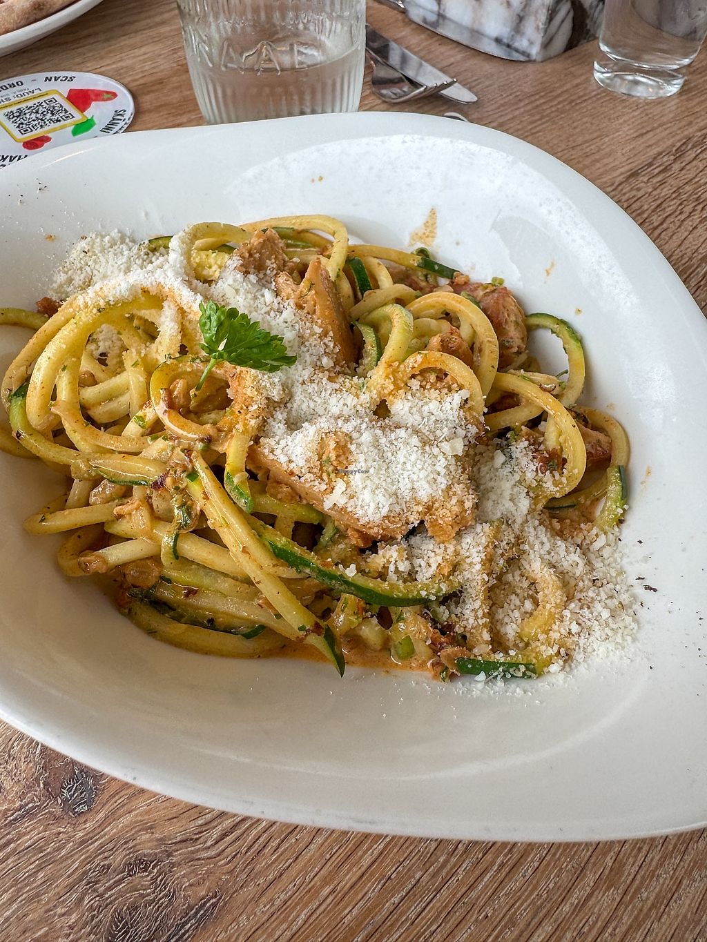I tried the Pasta Cream No Pollo, choosing courgette instead of traditional pasta. The dish was light and well balanced, with the courgette cooked al dente; firm enough to hold its form without going soggy, which worked well alongside the mild cream sauce.