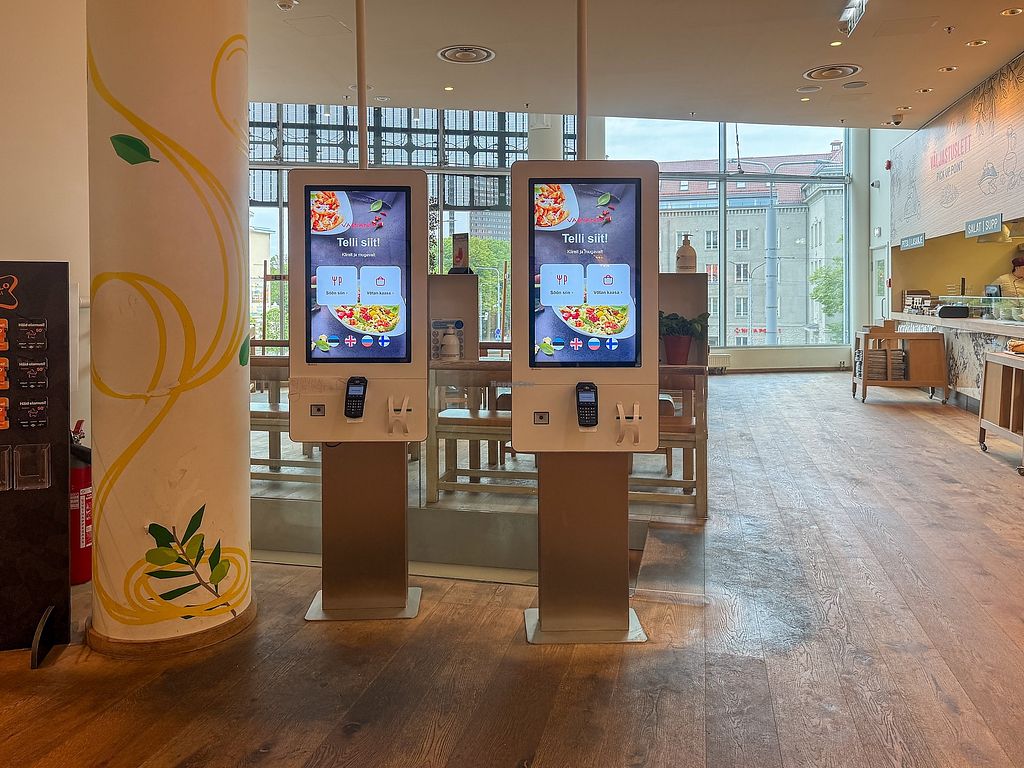 Read moreThe purchases are accounted on a card which is returned when exiting and you pay amount according to the credit on the card. Also when ordering pizza, you are given an appliance that starts vibrating when your meal is ready so you know to pick it up.
