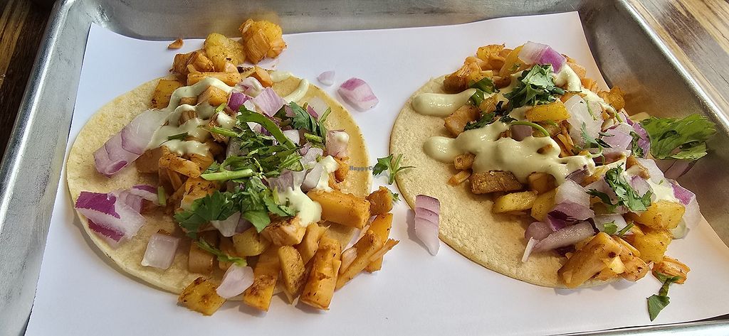 Jackfruit and pico tacos (the avocado cannot be made vegan)