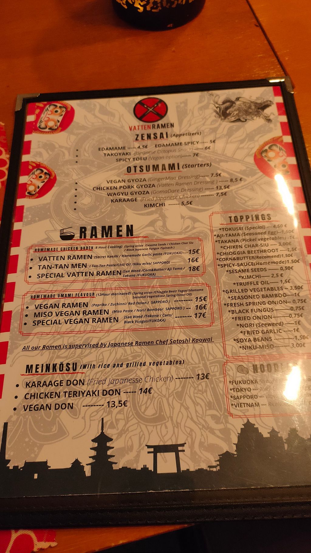 You can choose between three types of vegan Ramen. Normal, Mido and Spicy. And you can also have starters like Edamame. Everything was very delicious! Very friendly staff, we didn't have to wait too long for the food coming. I would go there again😄