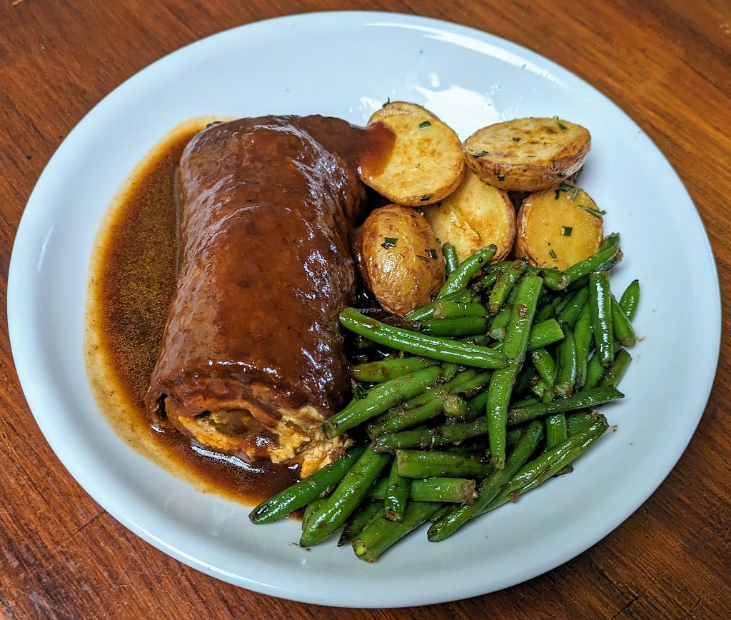 Seitanroulade, Rosmarinkartoffeln & Prinzessinenbohnen