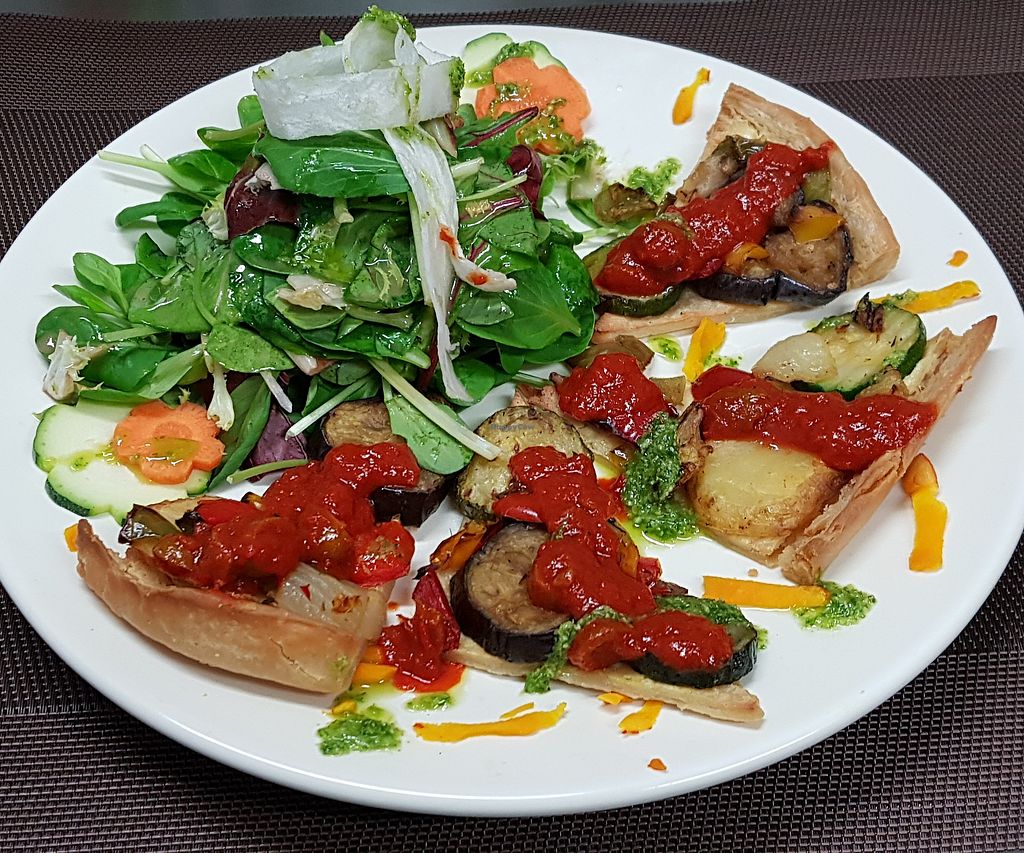 Spelt-Tarte Grilled vegetables (paprika, aubergine, courgette, potat…