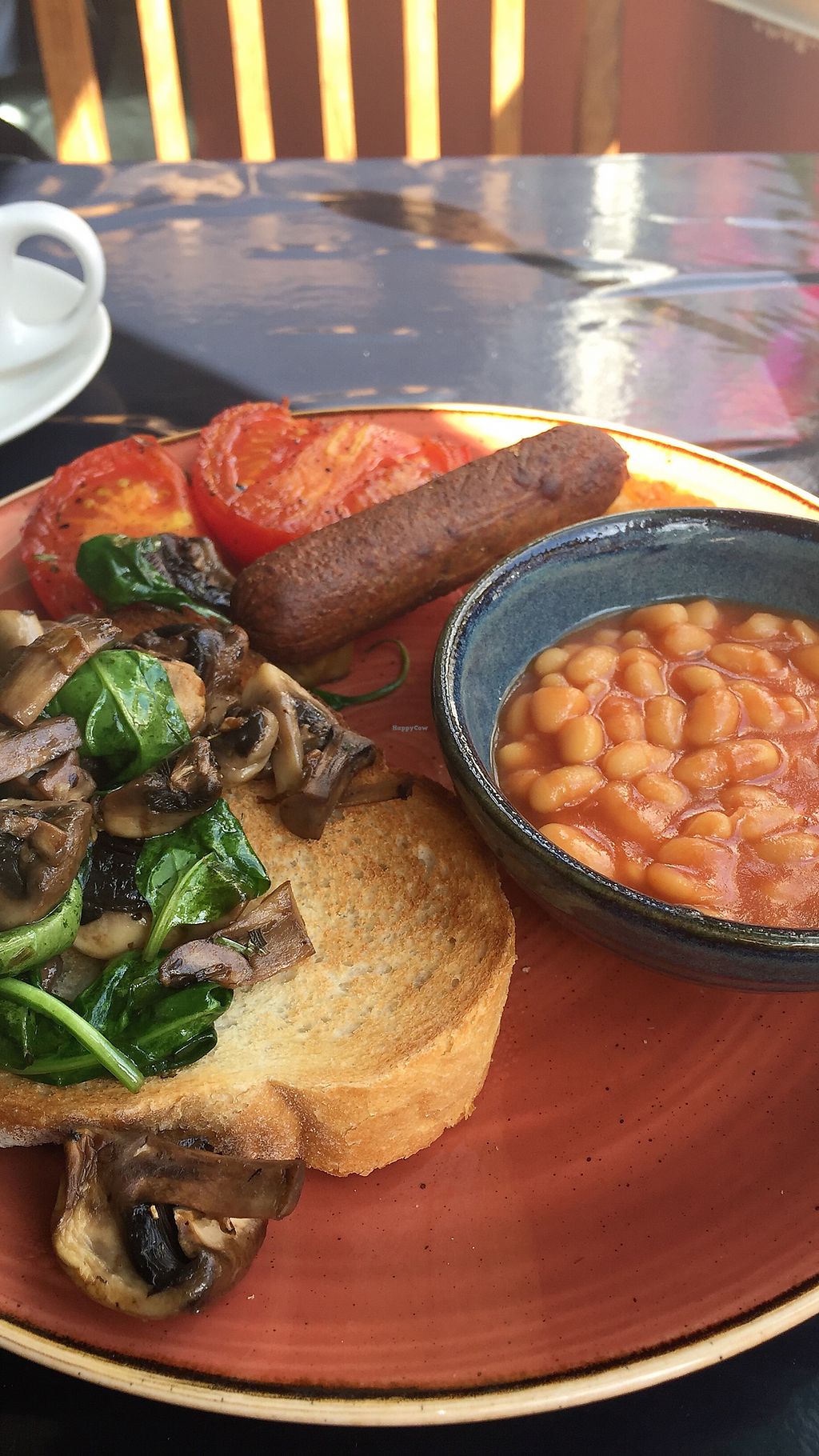 Got the full english which, on the menu says includes: Lincolnshire style sausage, rasher, baked beans, hash brown, fresh vine tomatoes and tarragon mushrooms on toast