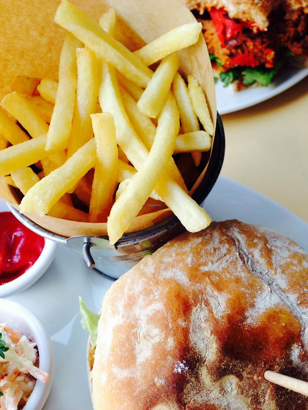 Me and my sister headed straight to VBites after arriving in Brighton, as we were so stoked for this place. We both had the "fish" and chips, and lemonade.