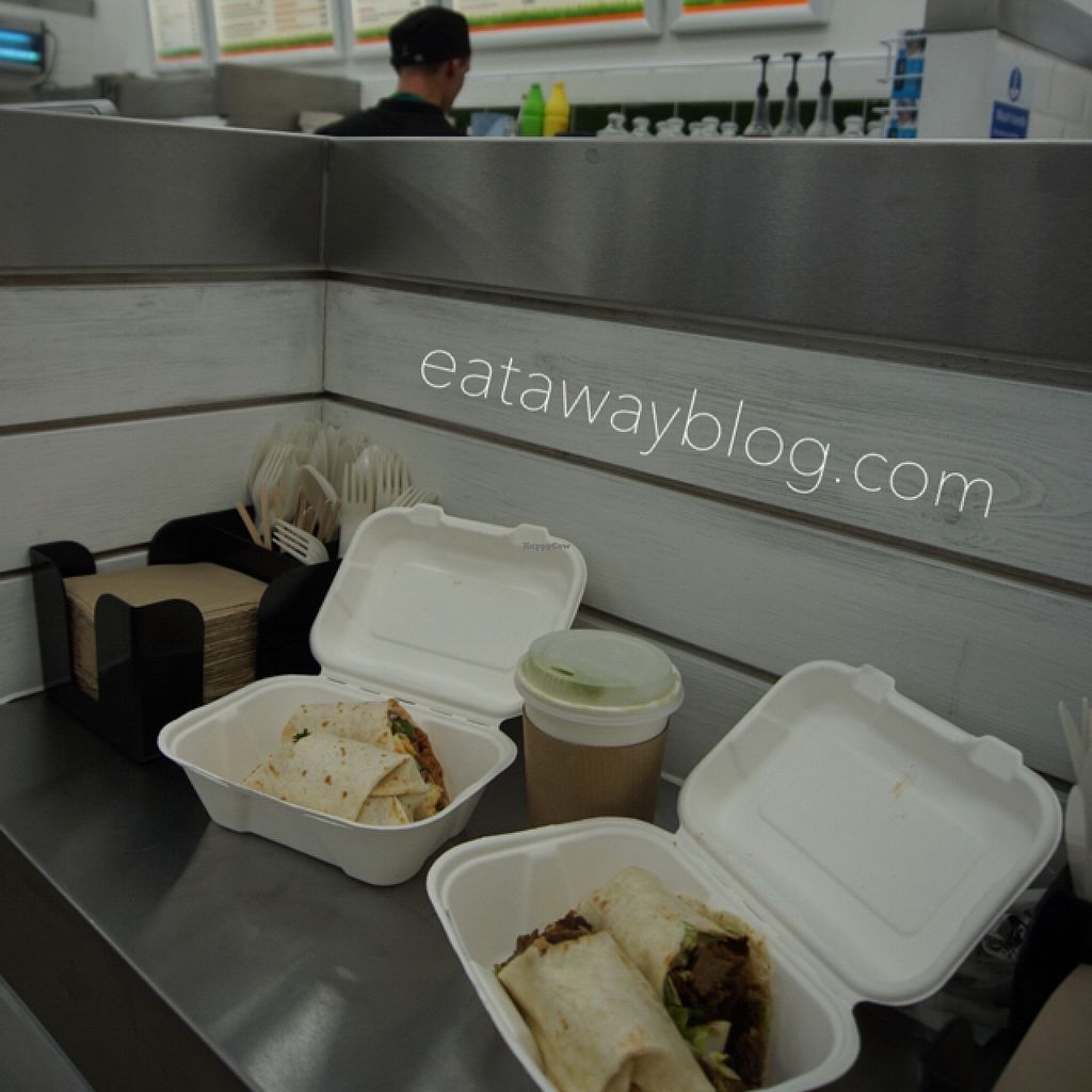 There's lots of choice from hot dogs to cakes and milkshakes and absolutely everything on the menu is vegan. The food is very quick and pretty generous sizes. Overall it's a great value little take away.