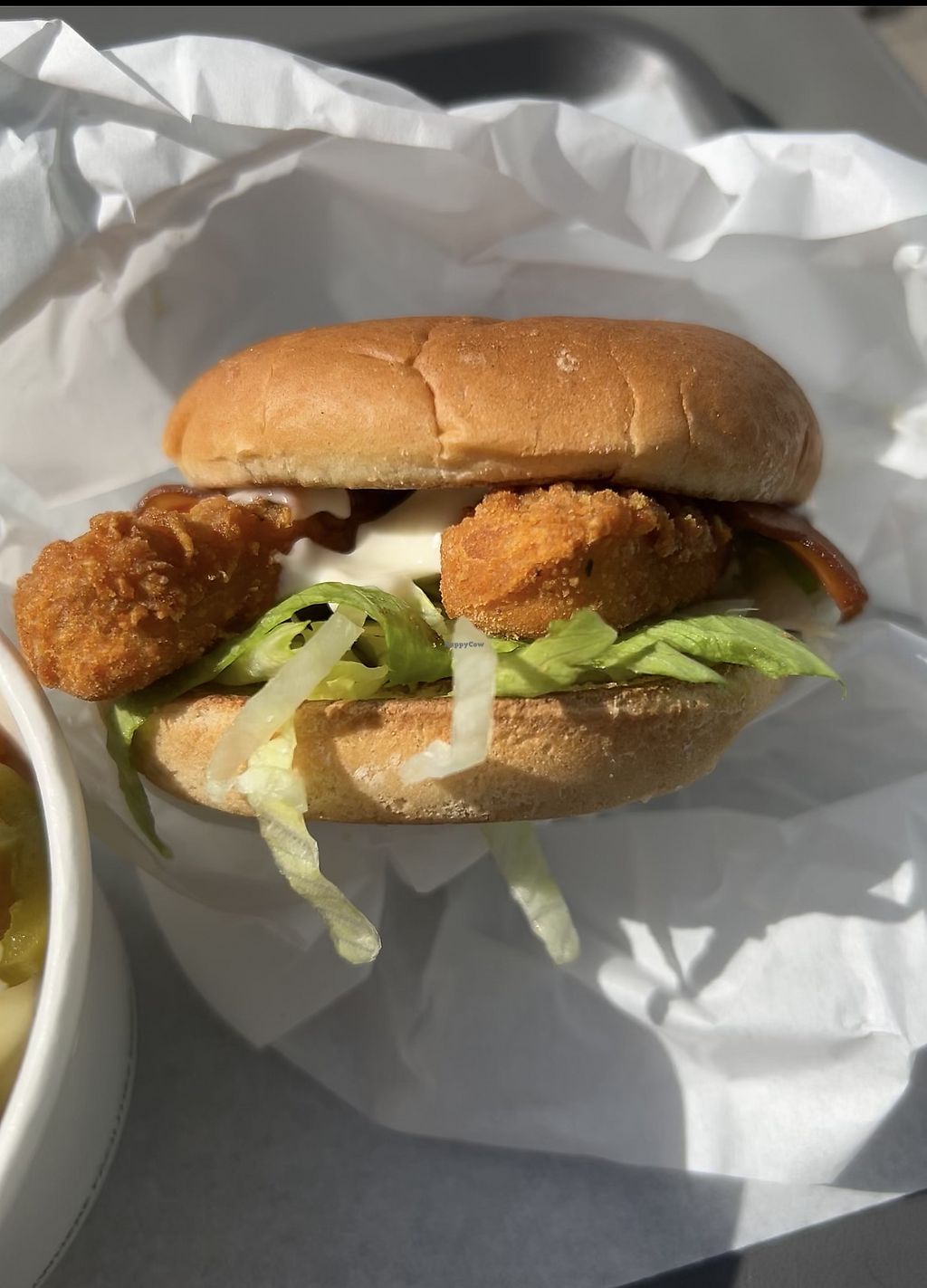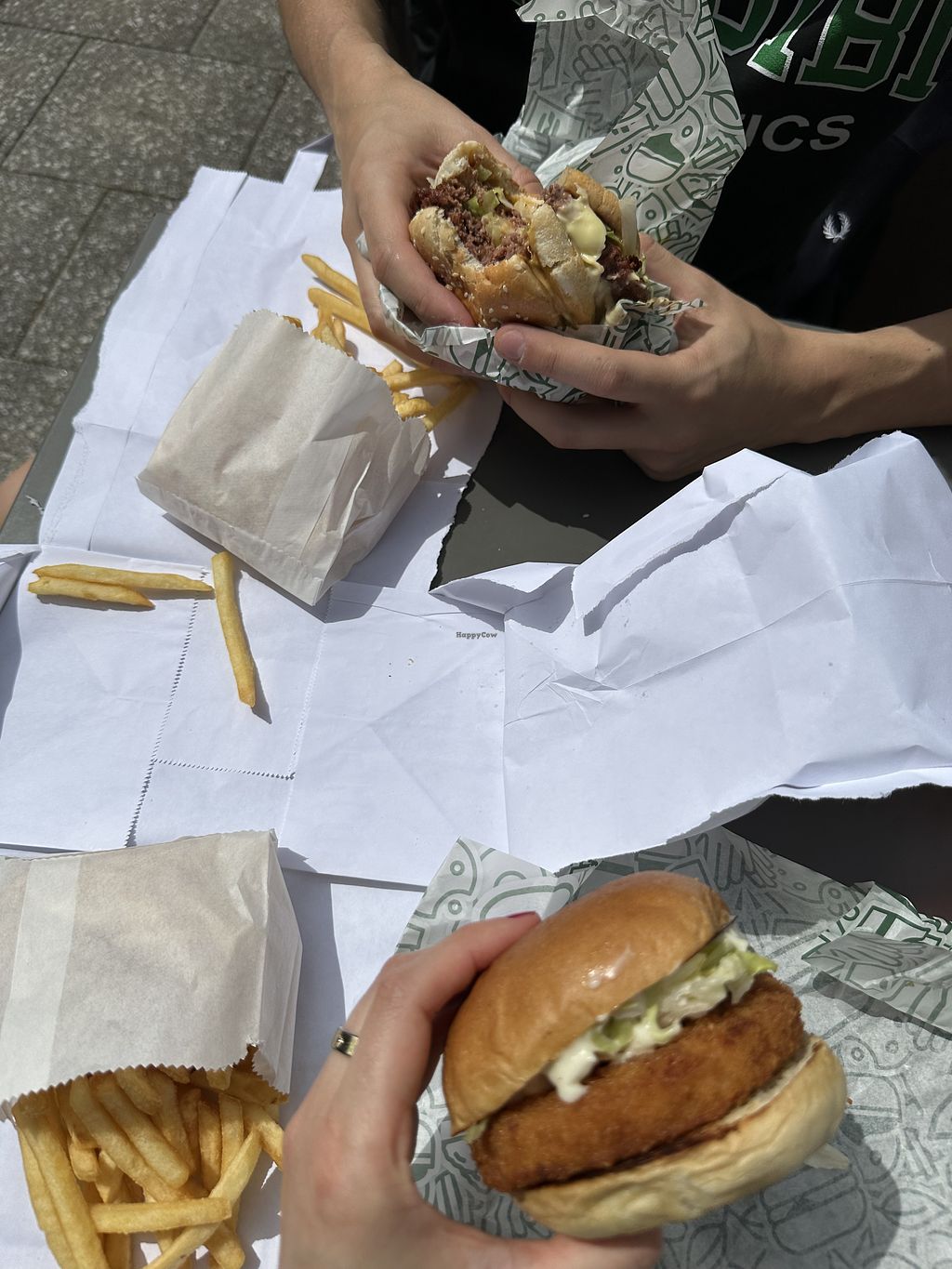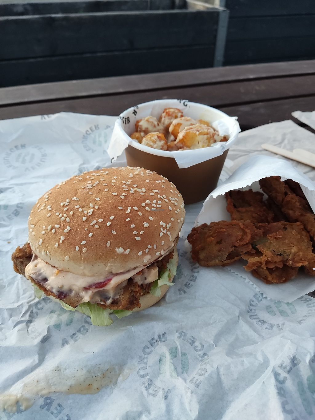 We had the sea food and chicken boxes - I think it’s the first time I’ve had a fish burger since I became vegan. It’s a small place but packs a big punch. Great choice and really good good junk food.