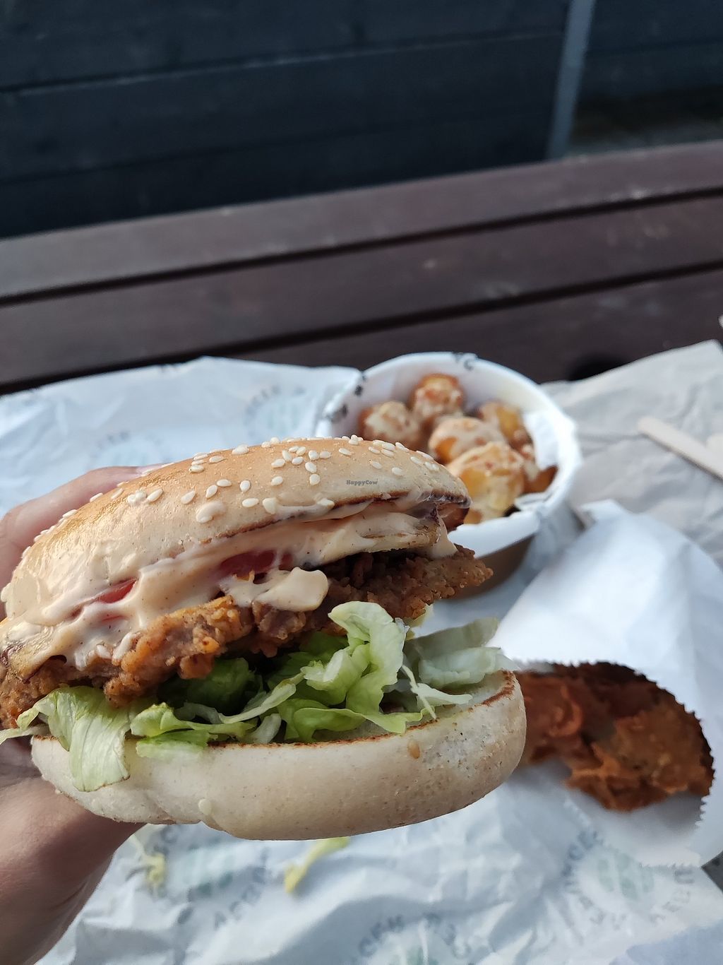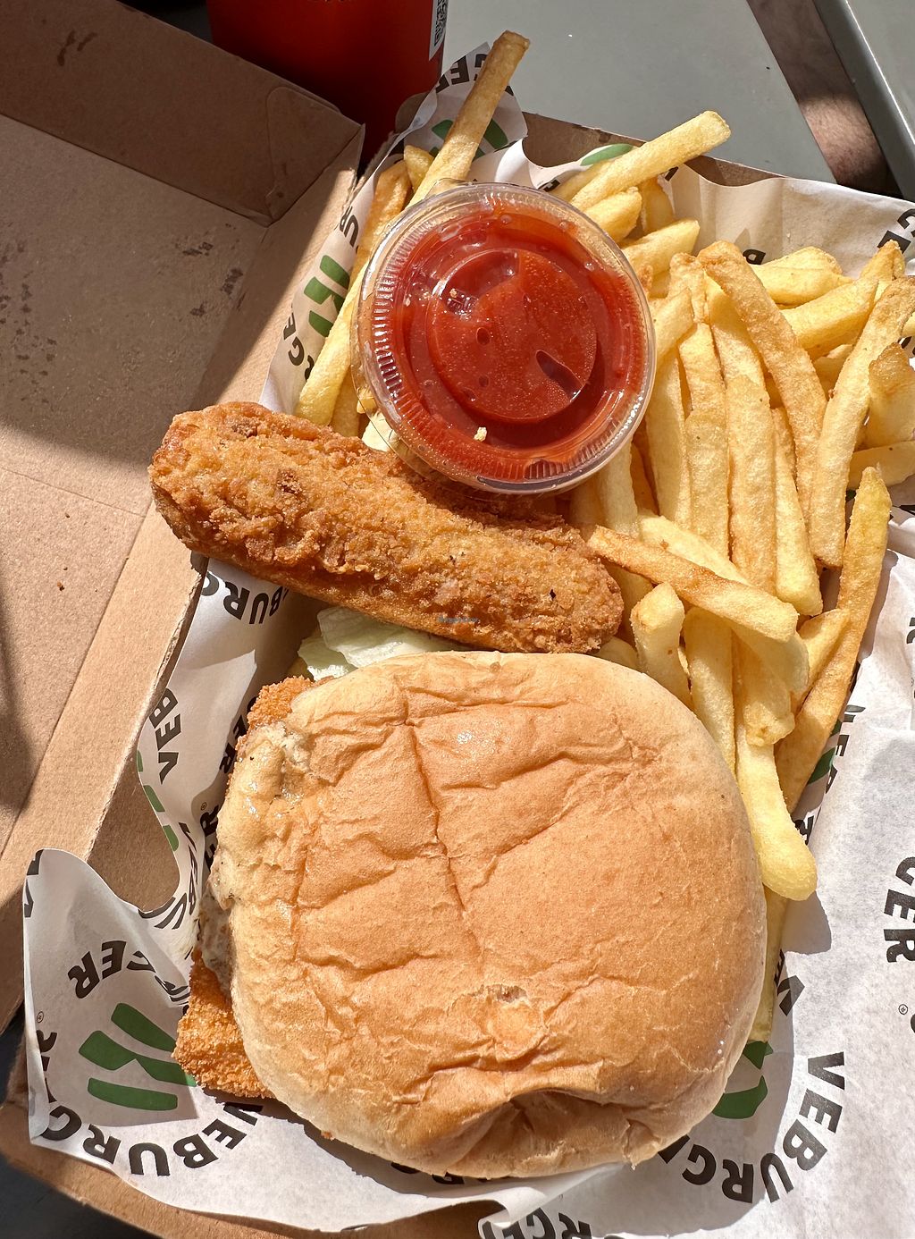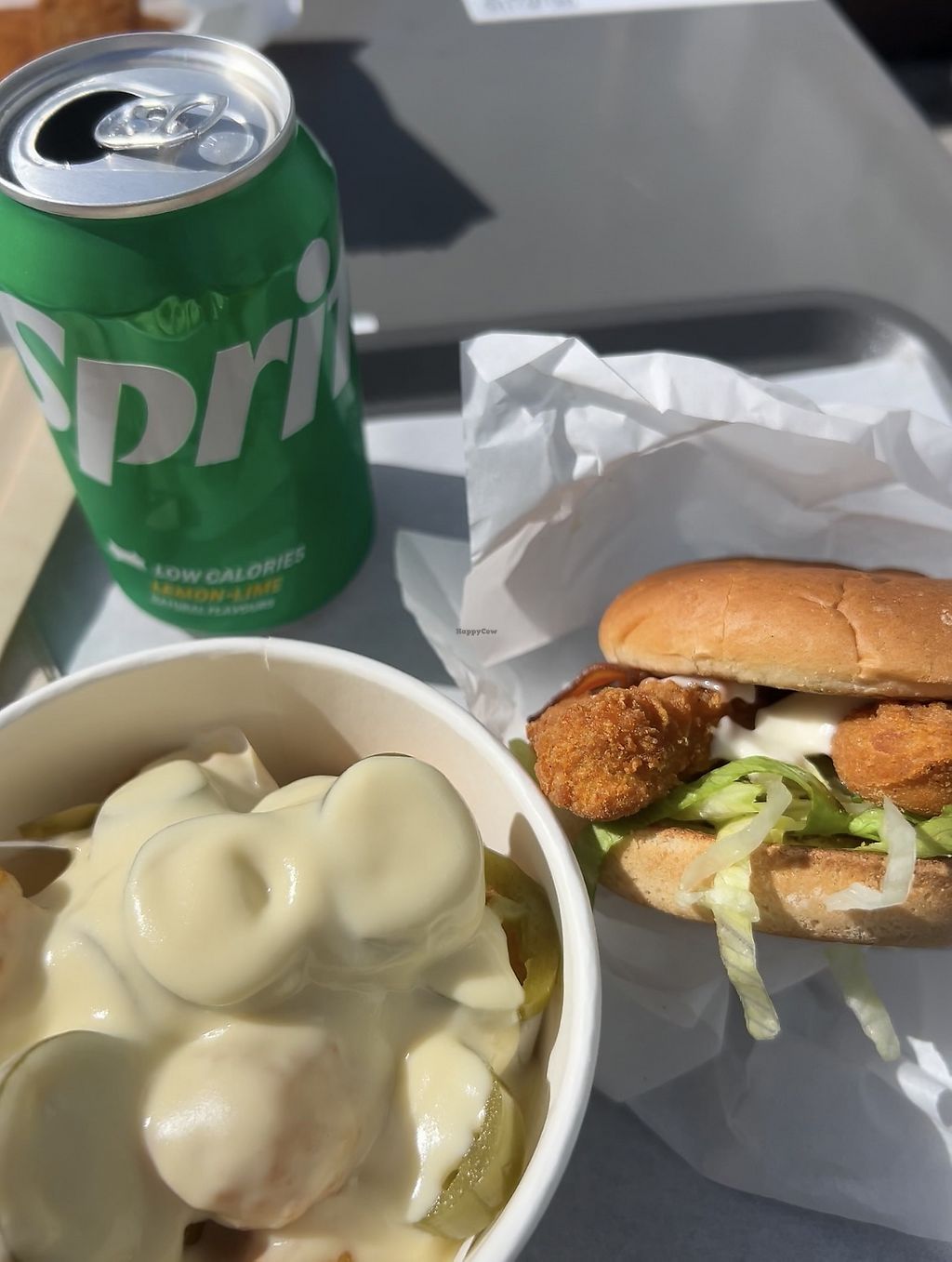We had the sea food and chicken boxes - I think it’s the first time I’ve had a fish burger since I became vegan. It’s a small place but packs a big punch. Great choice and really good good junk food.