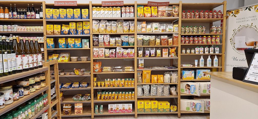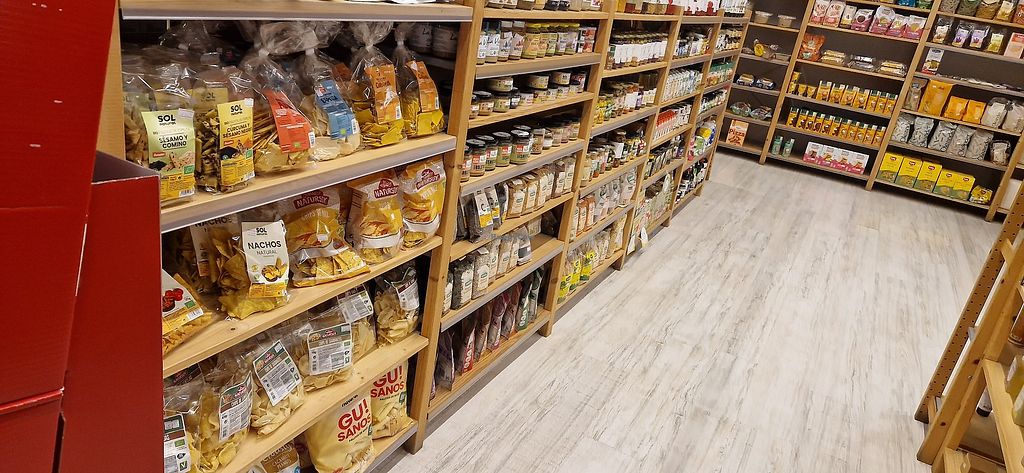 Very nice shop offering a lot of veg products such as seeds, flours, cookies, cupcakes, vegetable pates, legumes, coffee, teas, etc. Approximately 90% of the products are vegan.