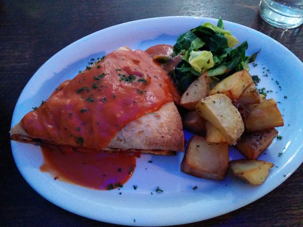 The second dish came out about 10 minutes later which was the jack fruit wrap, I would describe this as average and that is being kind. If I cooked this whole meal for myself I would have been disappointed in myself. It was mostly tortilla wrap, very bland and the chips were thin frozen fries which were overly seasoned and overcooked making them only really edible with ketchup.