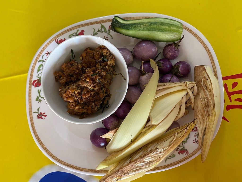 Variety of mock meats, veggie dishes and Thai specialties. Typical Jay food place with humble owners and good food. Later in the day it’s served cool because they cook in the morning.