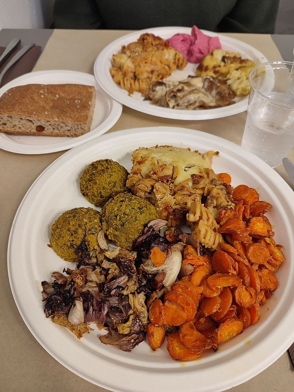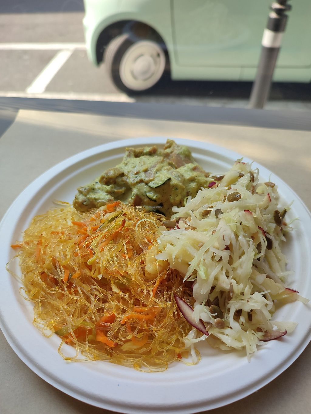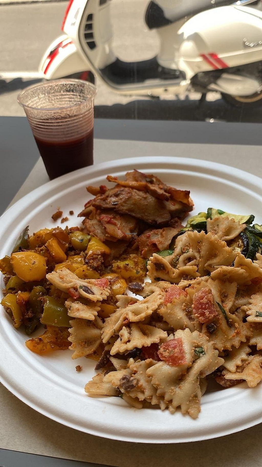 They have two size dishes 11€ or 14€, and you can choose 4/5 options. The seitan was delicious, as were the veggies. Everything very flavourful. They serve everything on paper plates and cups I don't understand why, but... anyways food is delicious.
