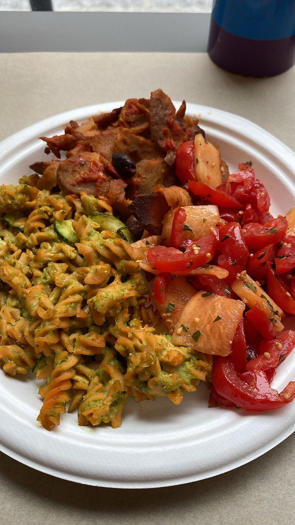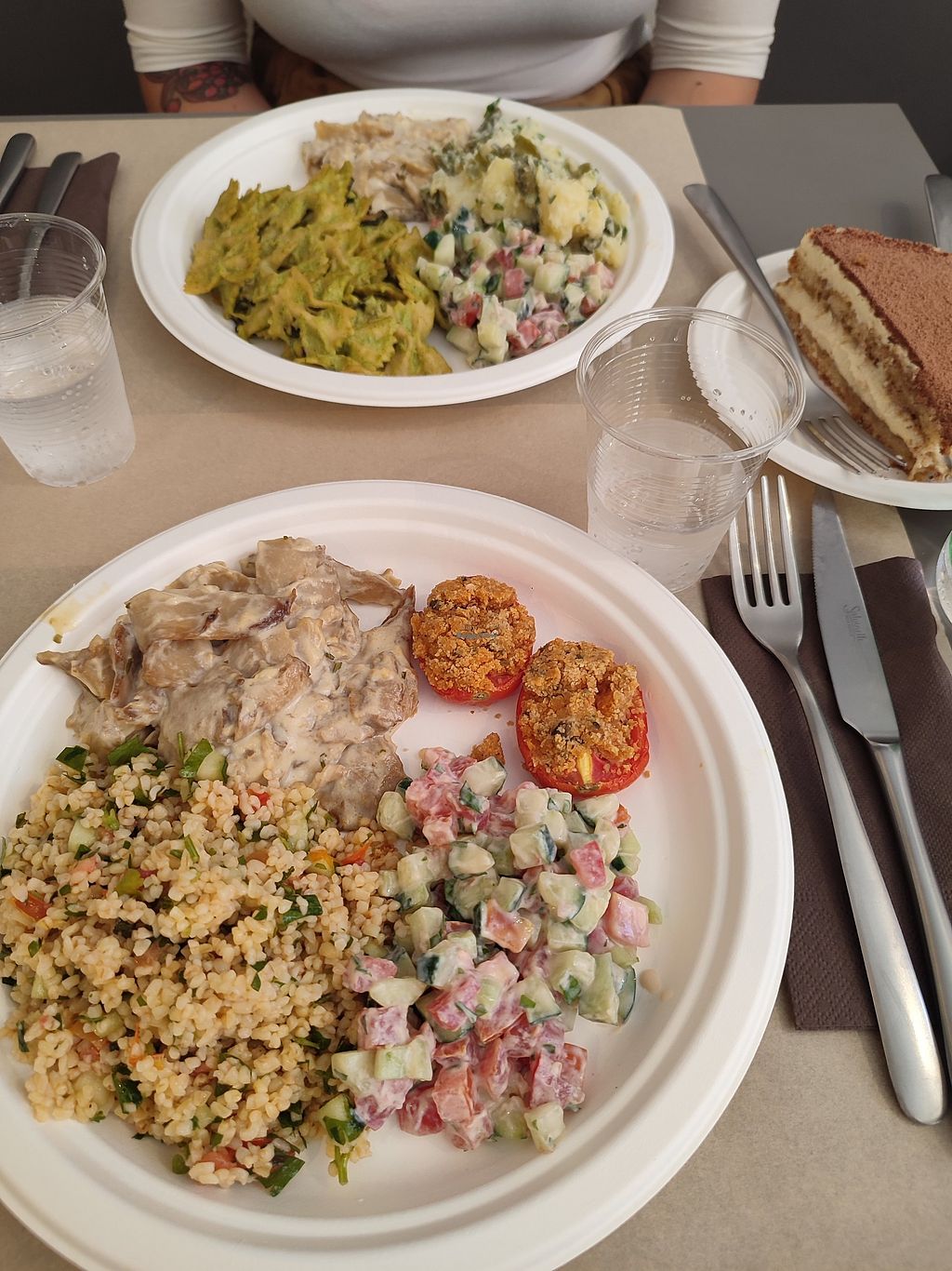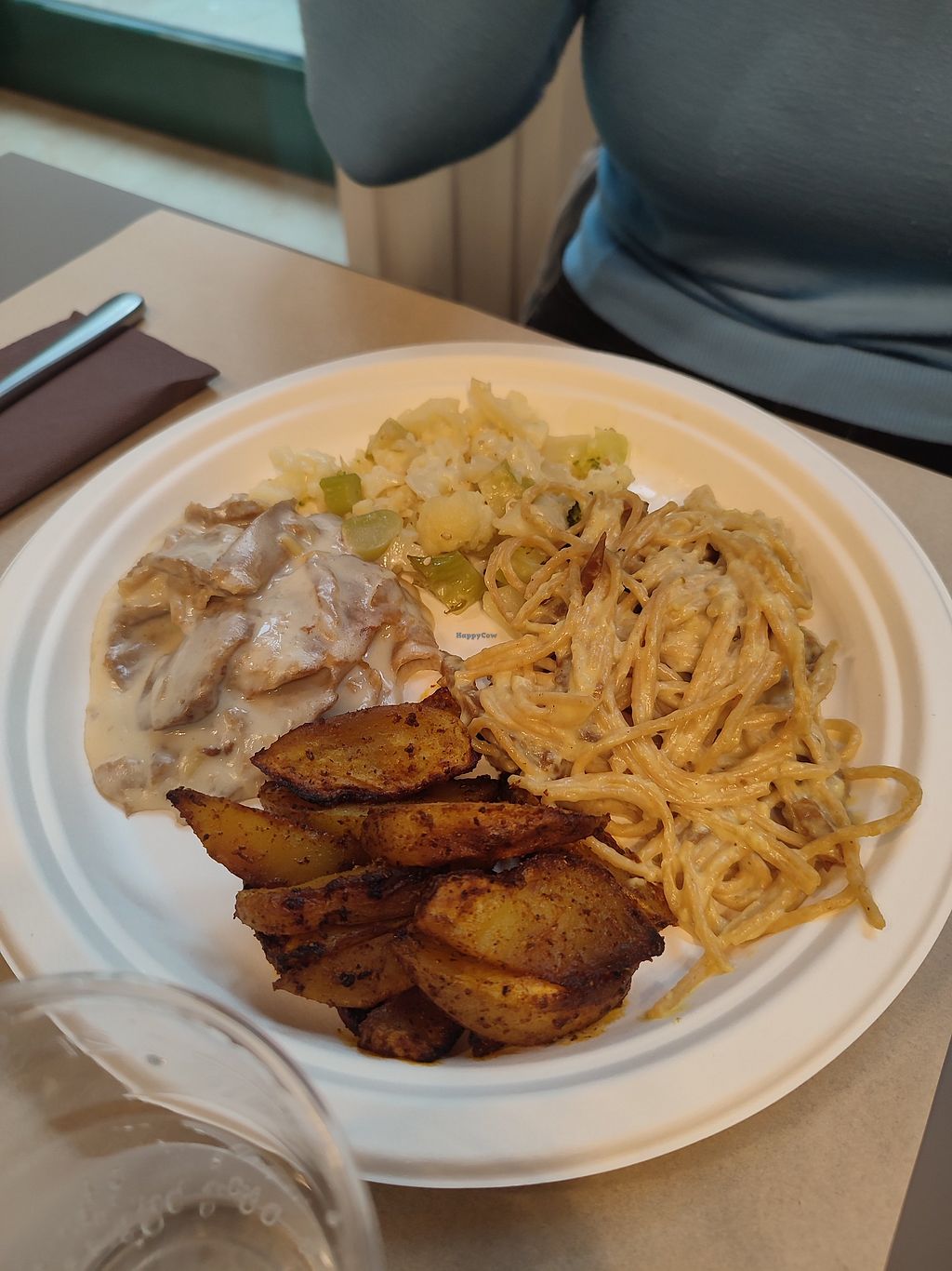 They have two size dishes 11€ or 14€, and you can choose 4/5 options. The seitan was delicious, as were the veggies. Everything very flavourful. They serve everything on paper plates and cups I don't understand why, but... anyways food is delicious.