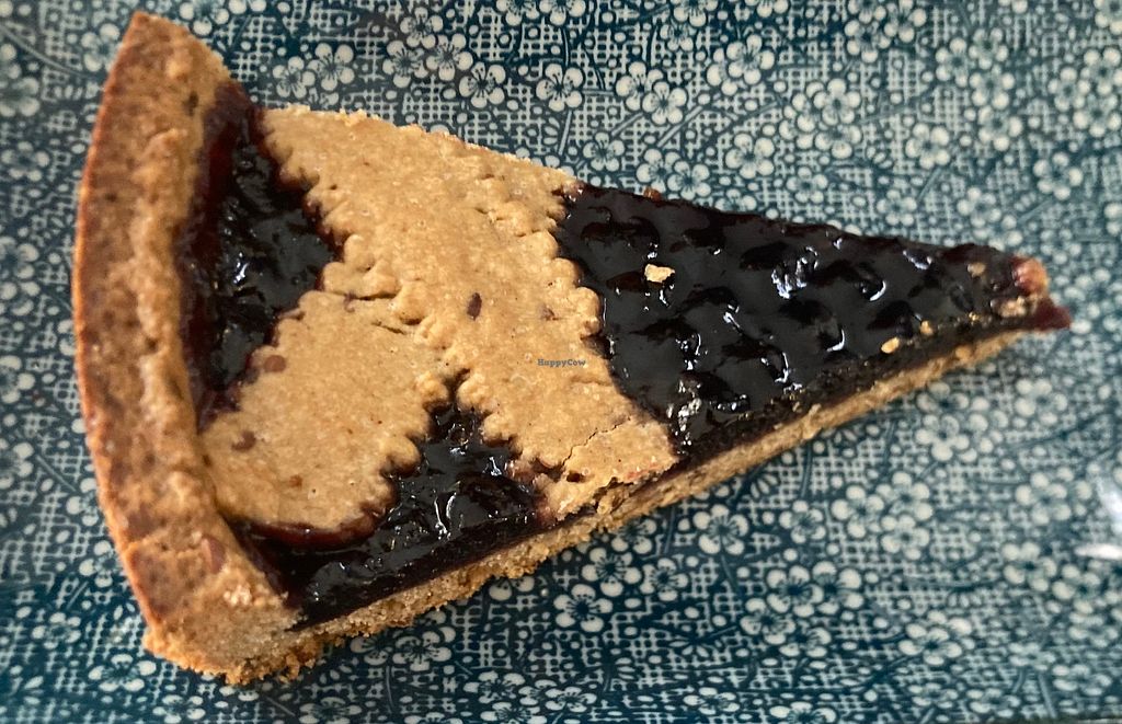 Elderberry and raspberry jam tart