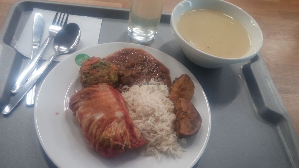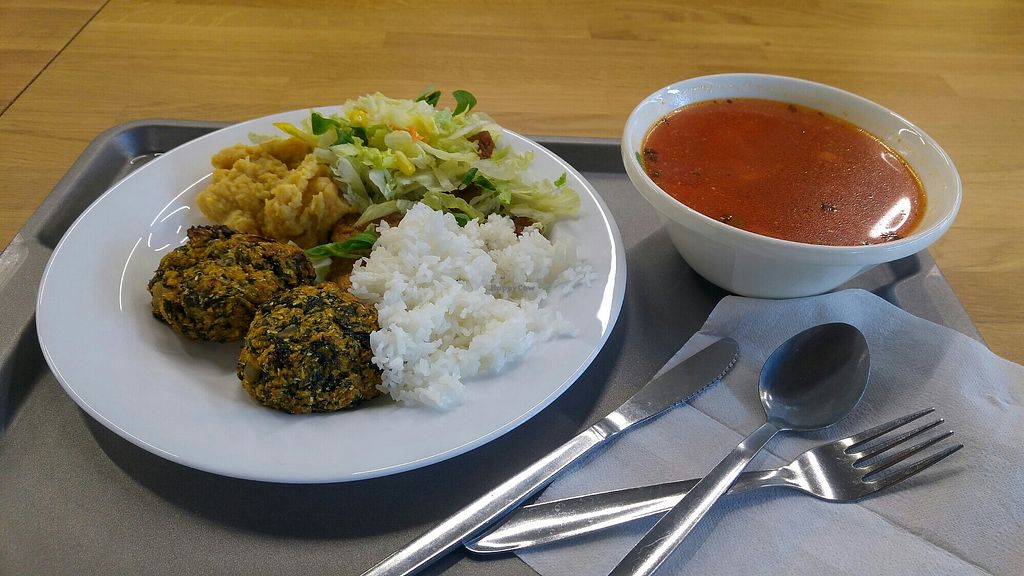 I come for lunch and there is always something to choose from. Few main dish options, always at least one or two vegan main dishes, soup always vegan. They also have nice desserts and free water.