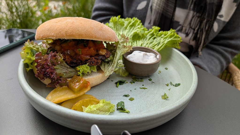 Das Restaurant ist wunderschön gestaltet, modern, gemütlich, sehr stimmig. Wir haben uns wohlgefühlt. Das Konzept ist etwas verwirrend - es nennt sich Vegabar, tatsächlich werden aber sowohl vegane als auch vegetarische Gerichte angeboten. Der Service ist super freundlich, aber so ganz rund lief es noch nicht. Die Wartezeit war relativ lang. Mit dem Essen (ich hatte Falafel, meine Freundin einen veganen Kuchen) waren wir zufrieden.