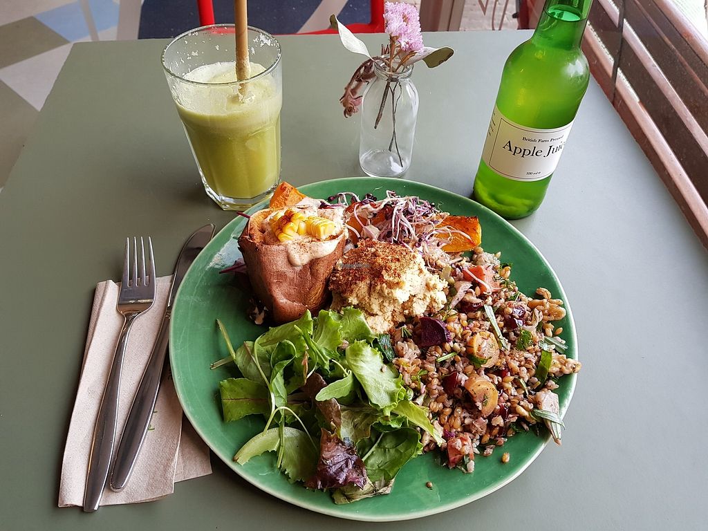 This is a roasted Sweet Potato, topped with a thick tahini yoghurt sau…