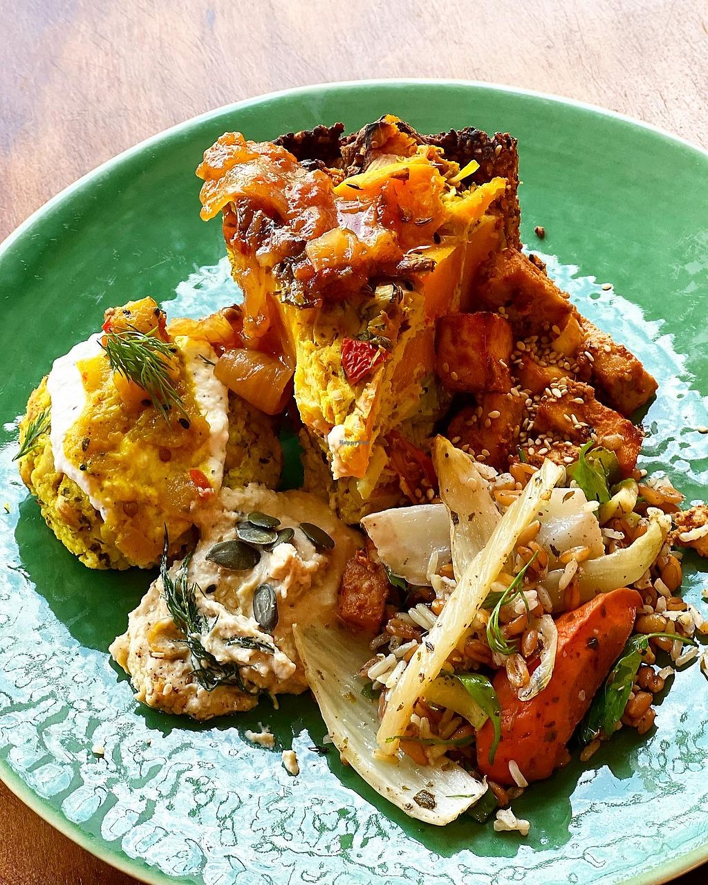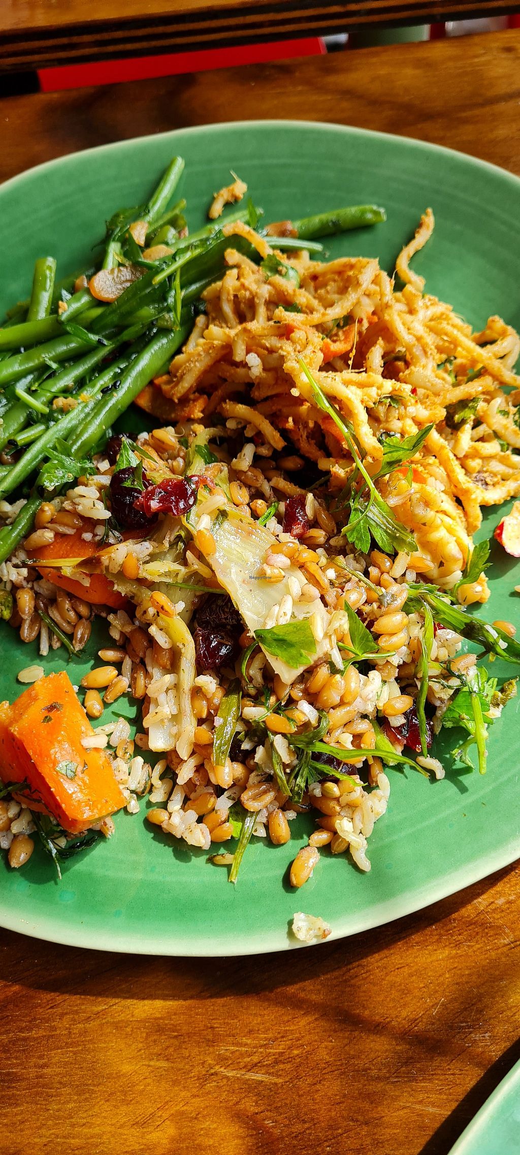 Glorious grains salad with tahini mustard dressing, Korean bbq burger ā¦