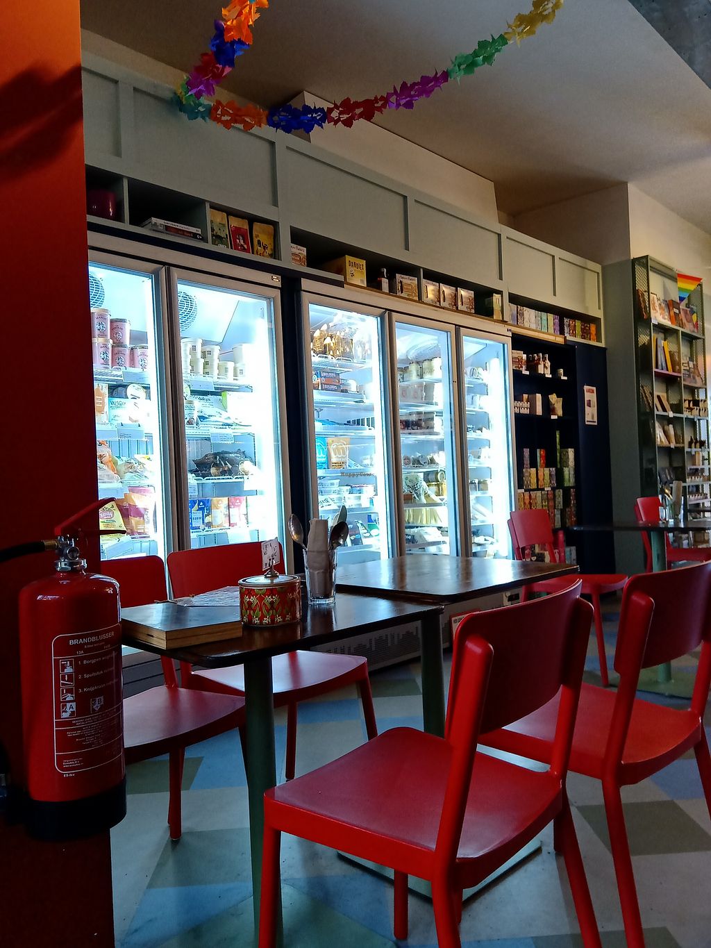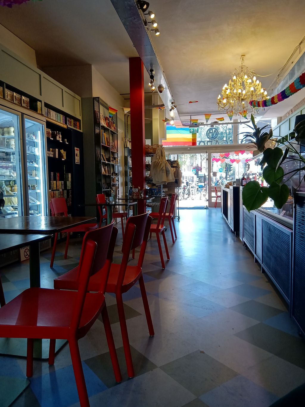 Inside Vegabond, with some of the indoor seating on the left and the d…