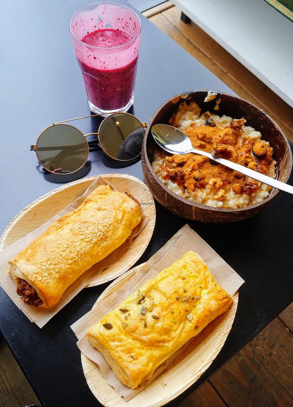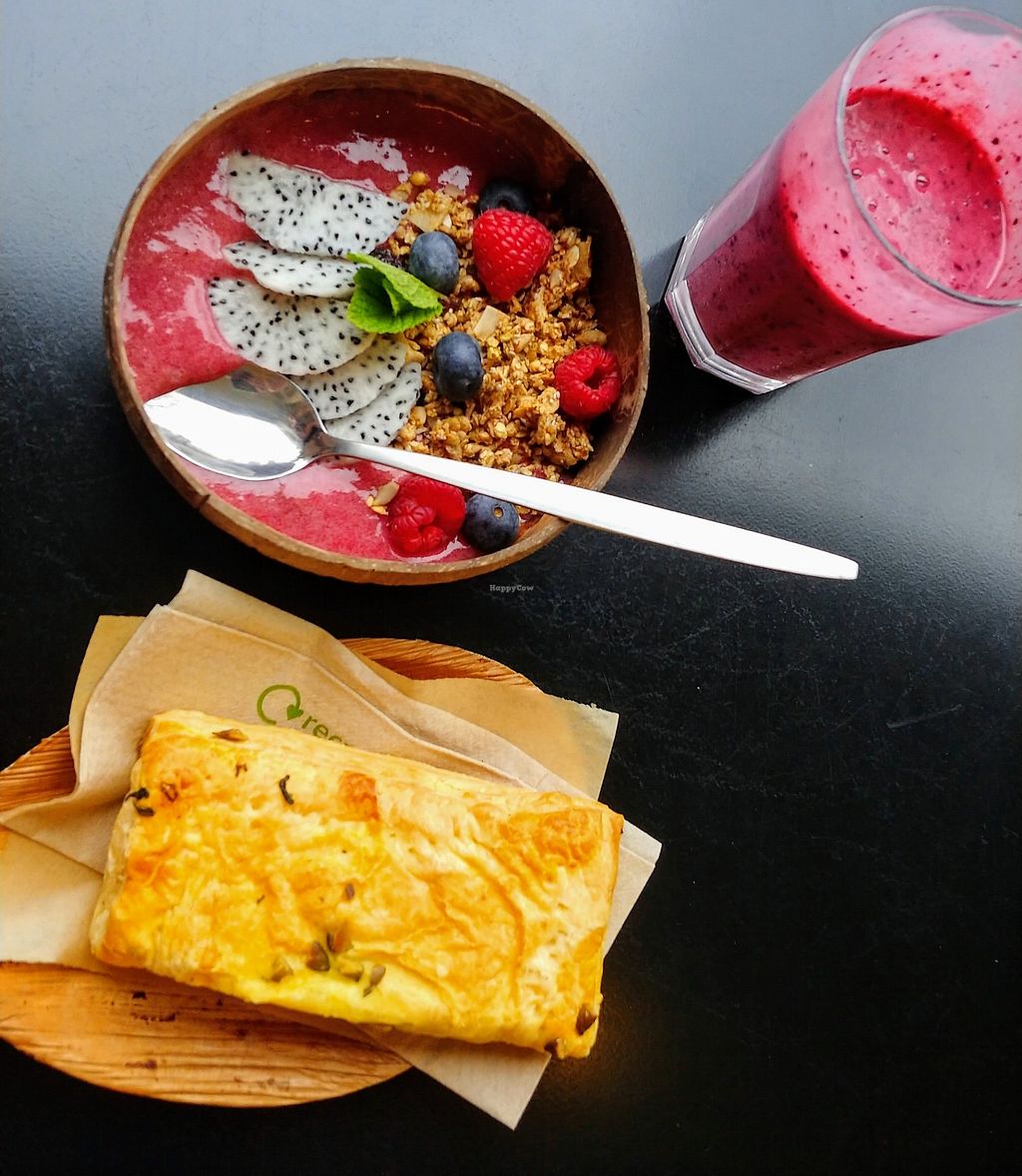 Acai bowl, sausage roll