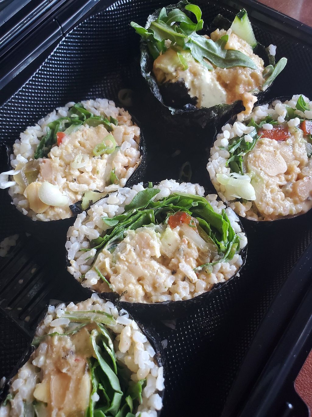 Really good mushroom vegan sushi. Fresh and delicious! Highly recommend. The sauces were amazing too and the juice.