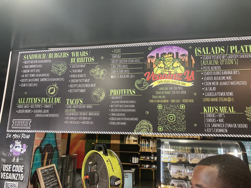 Vegan eatery est. 2020. Delivers via apps. Menu offers burgers, sandwiches, nachos, mac n cheese, sushi-burritos. Soy-free. Open Mon-Sat 11:00am-8:30pm, Sun 11:00am-7:30pm.