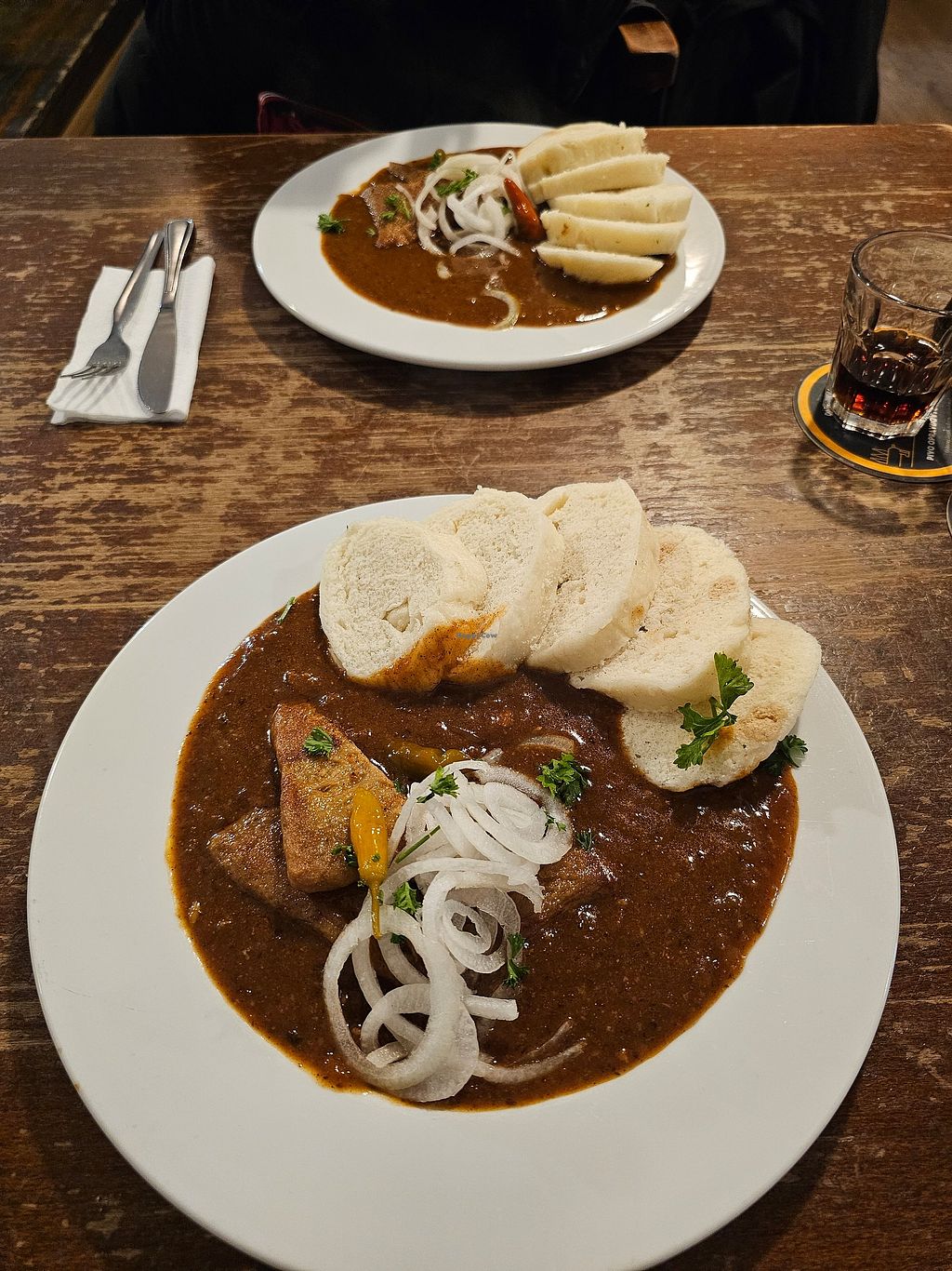 We had the goulash with dumplings so that we could finally get a taste of Czech cuisine. There were just two problems: Firstly, the sauce was super salty so try to ask for less salt or maybe order another dish. Secondly, the whole restaurant is underground and there are no windows or good ventilation system. We and our clothes heavily smelled like oil and food when we left and had to shower and wash our clothes to get the smell out of it.
