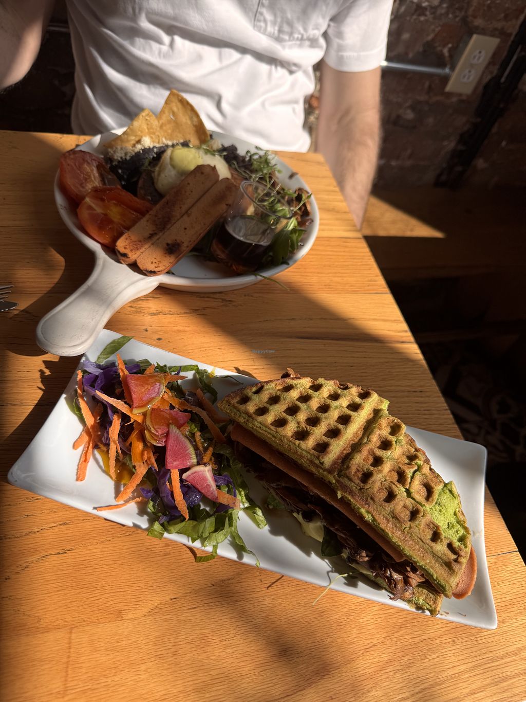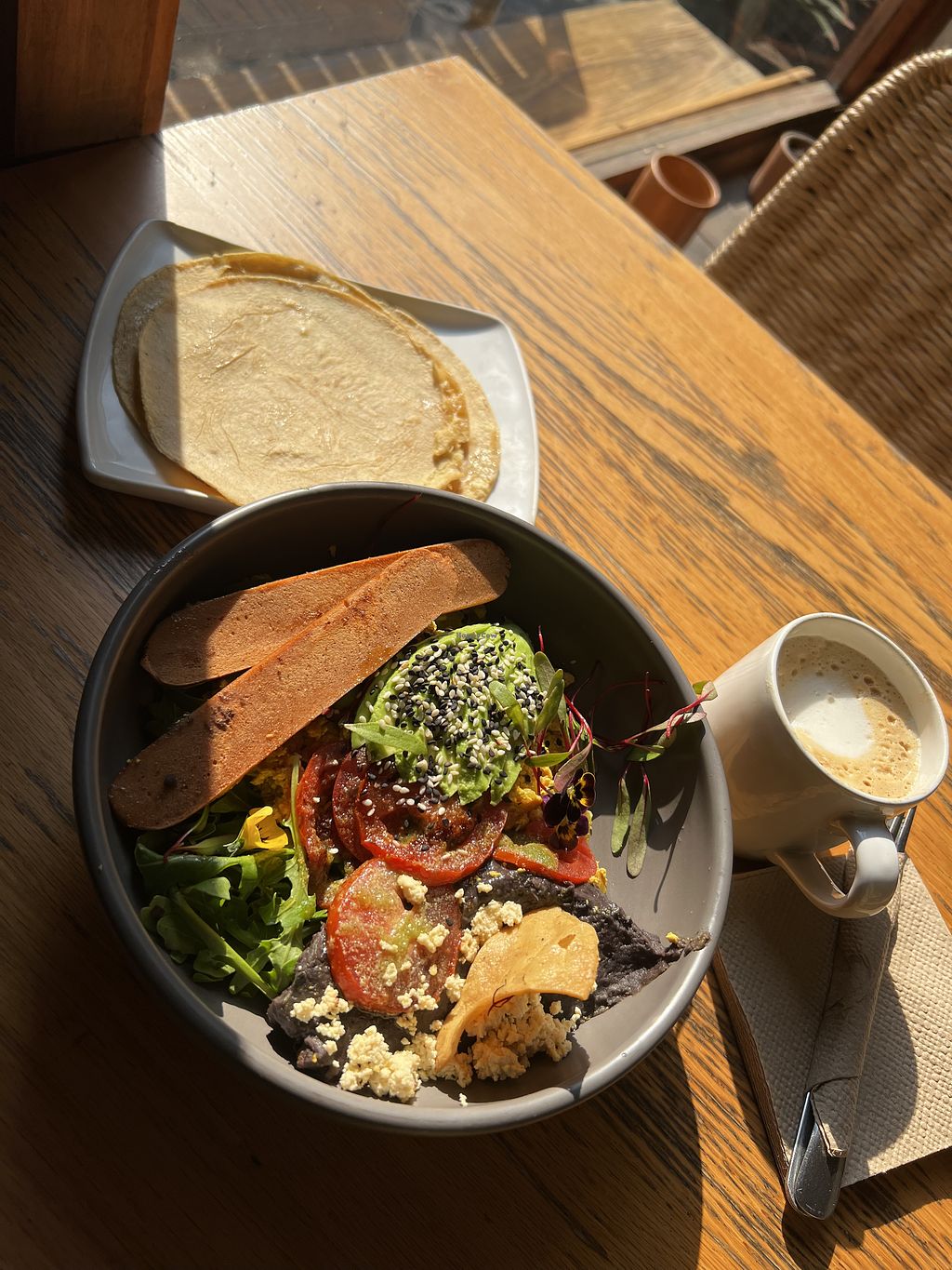 Below: Tofu a la mexicana / Above: Chilaquiles verdes