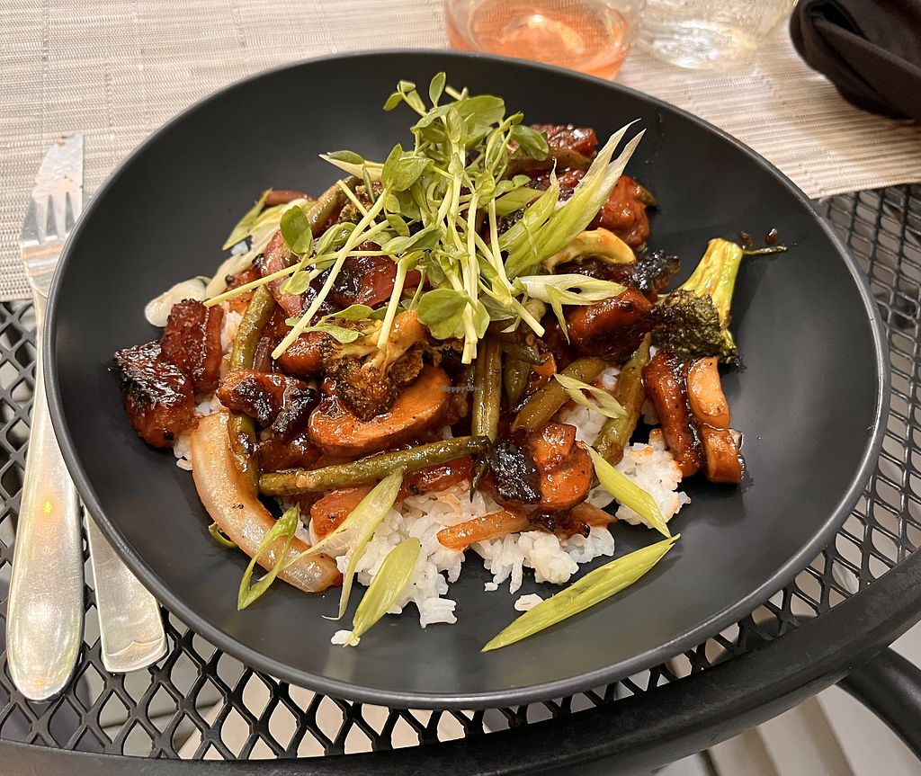 Hubby and I went here for dinner. We were impressed with the menu options and variety. All of our selections were delicious. I appreciated the non alcoholic drinks. We especially liked the caramelized onion/mushroom pate and the tofu bowl. Dessert was amazing 😍. The staff was friendly and attentive. We also enjoyed the space itself. We will absolutely be back when the weather is nice now that I see they have outdoor seating. (My only neg was the restroom down a flight of stairs; hard on my arthritic joints)