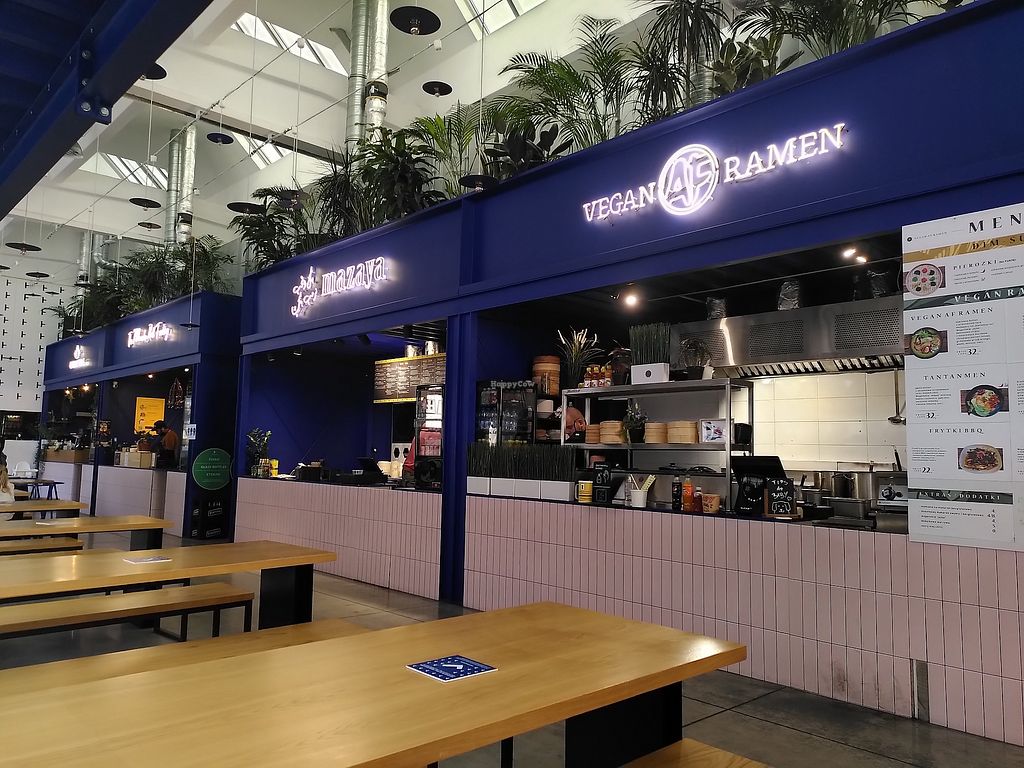 An all-vegan food stall inside a food hall. Offers vegan ramen and Asian/Polish fusion. Reported closed May 2022.