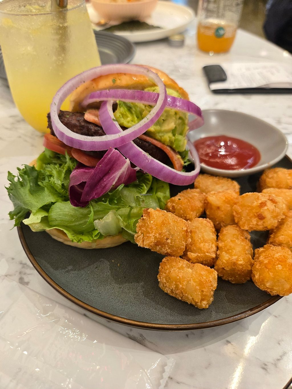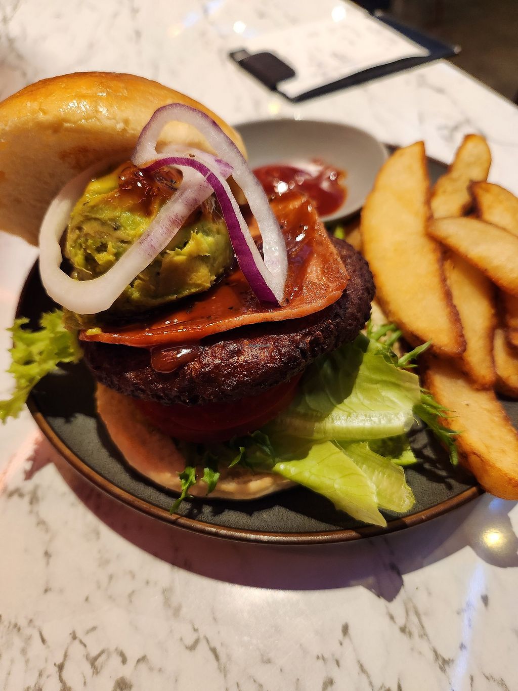 I had the Vegan burger with bacon and guacamole to eat and a kale apple etc fruit juice.