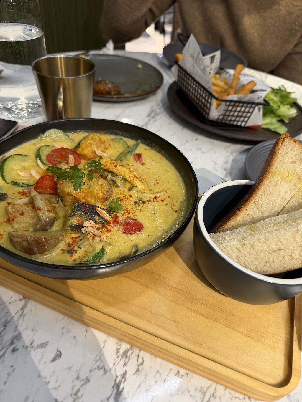 Overall, this was a pretty good dining experience. Vegan Amore is located inside the mall on the third floor, and the space is colorful, modern, and really inviting. My favorite dish was definitely the pumpkin stew — rich, comforting, and perfect with the European bread it comes with. I also loved the sea salt caramel oat milk latte, which was surprisingly balanced and not overly sweet. A solid vegan option if you’re in the area!