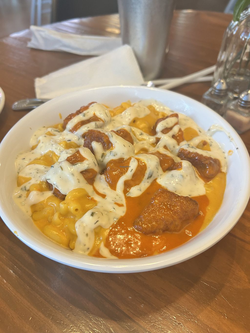 Delicious Buffalo chick’n sandwich and even better fries. Hit the spot!