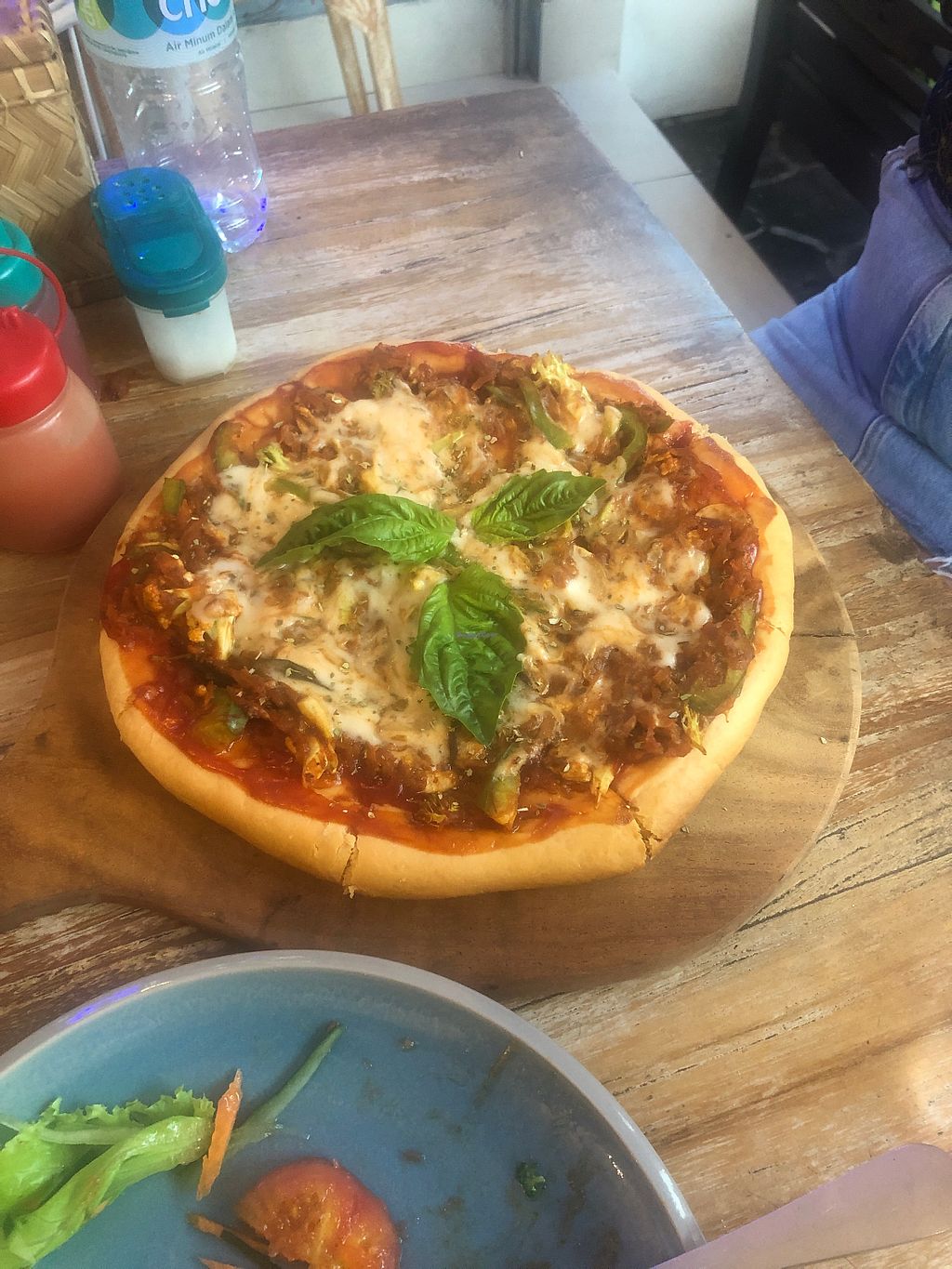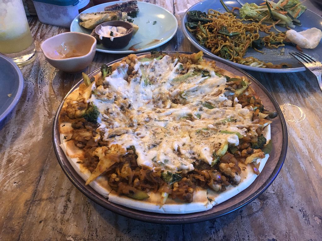 Food was really tasty.. but The pizza didn't work very well.😡Sorry.. but I thought it was just bought corpus with ketchup and vegetables on it. best tasted vegan cheese...otherwise not much.