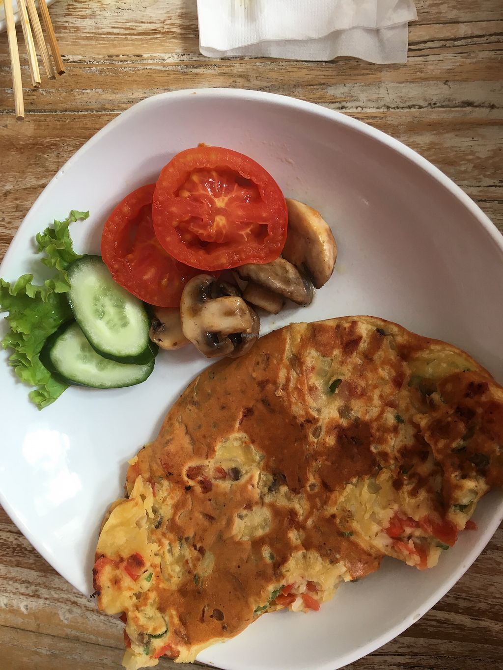 Очень вкусный "омлет" из тофу, морковный торт выше всех похвал! Омлет рекомендую попросить меньше соли, на мой взгляд перебор( помещение очень маленькое, готовят на коленях)) туалет через кухню(((