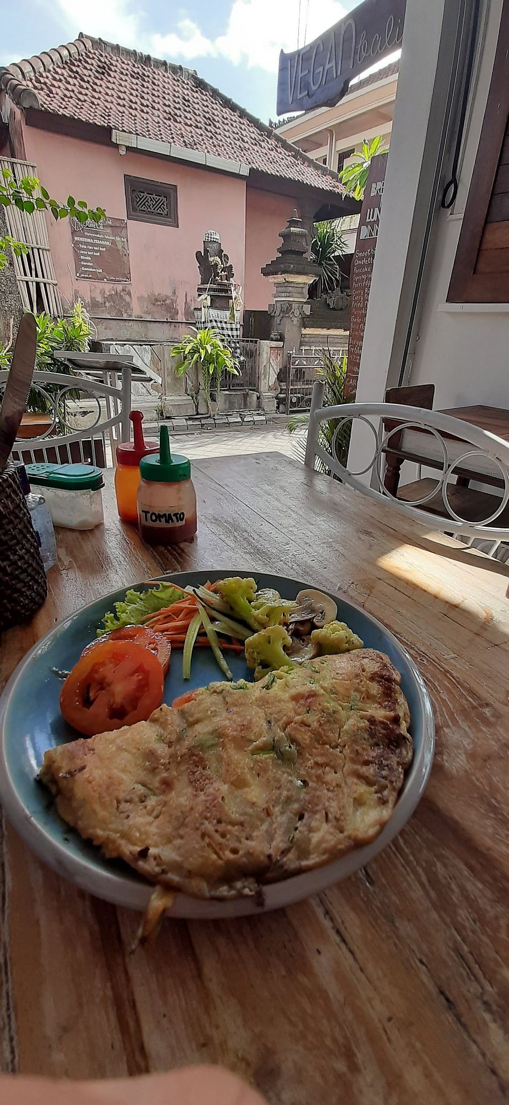 Update 2020: I went back as I was waiting for my Perama bus, staff was a bit unfriendly and seemed to be more interested in their phones. Had an iced coffee (really yummy), the vegan omelette (should have asked for ketchup, a bit dry) and the chocolate cake (amazing, even though a bit pricey at 39k, but it was a big piece). Overall would still recommend!!