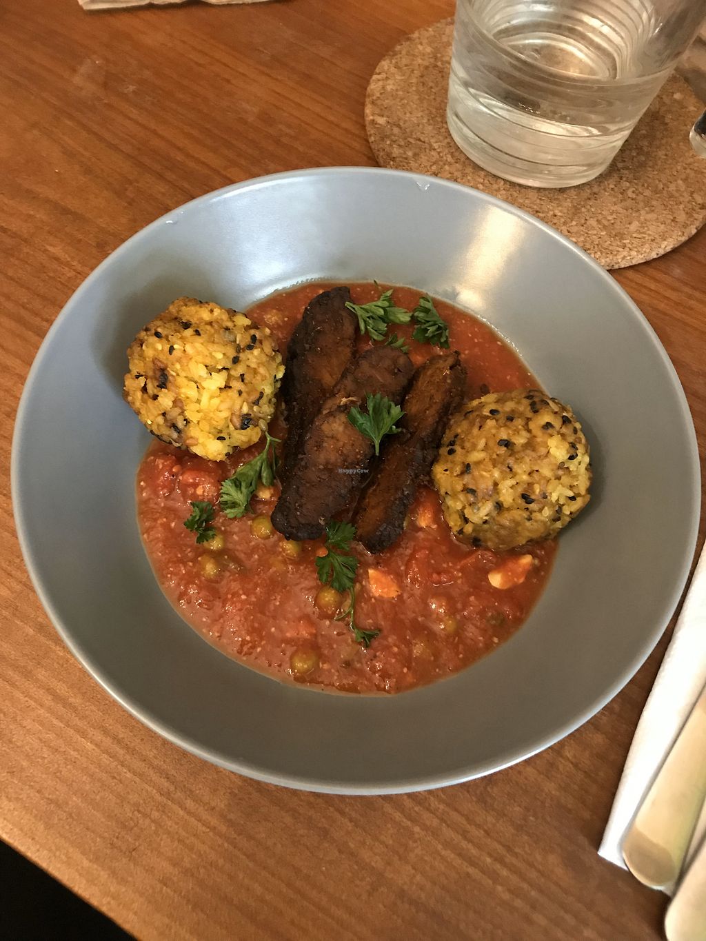 Smoked tofu and beans stew with rice and salad from the daily menu