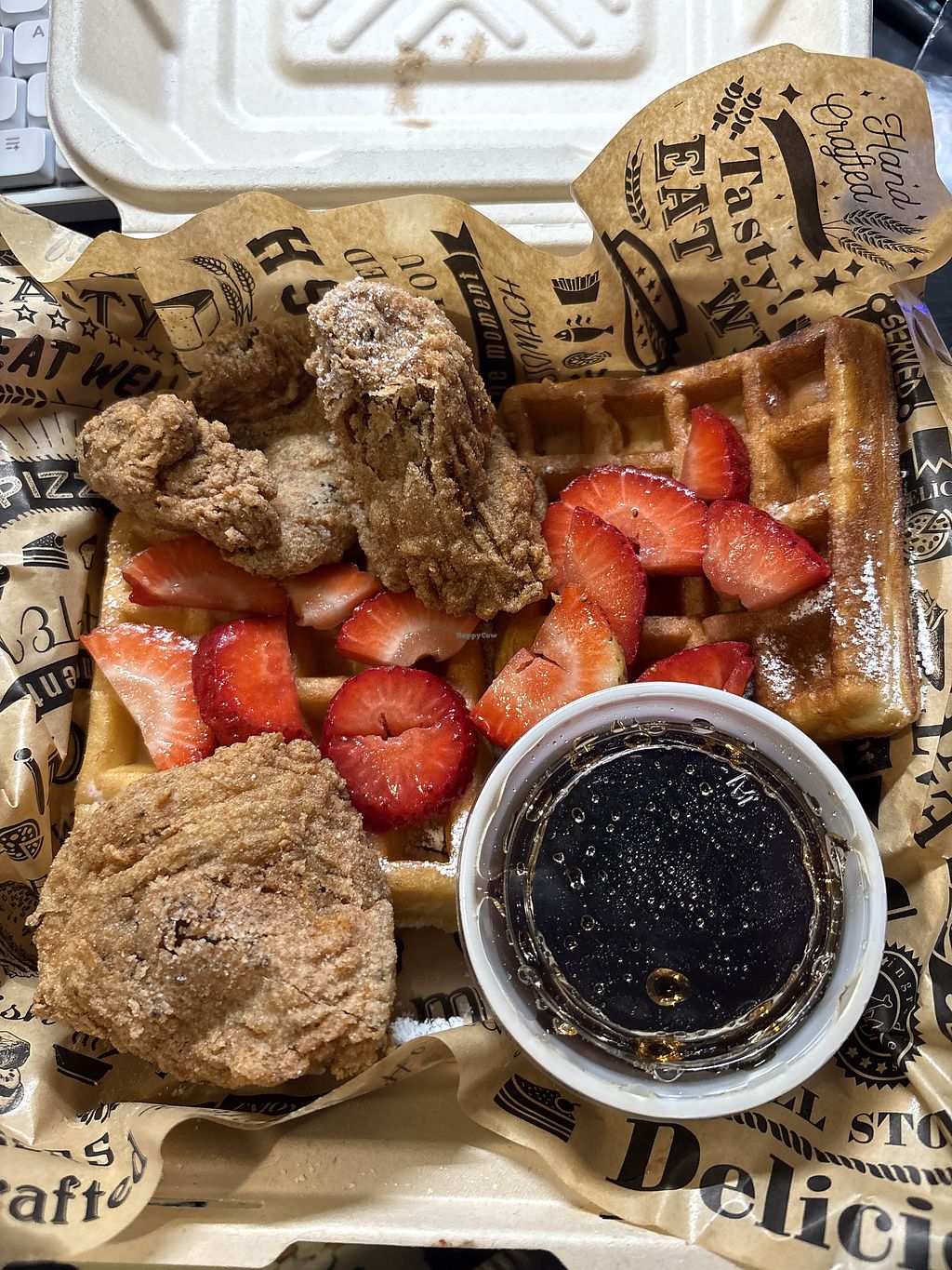 Vegan chickn (Lions mane mushrooms) and waffles with pecans #Veganuar…