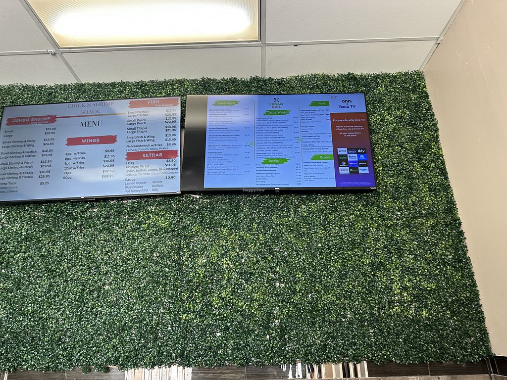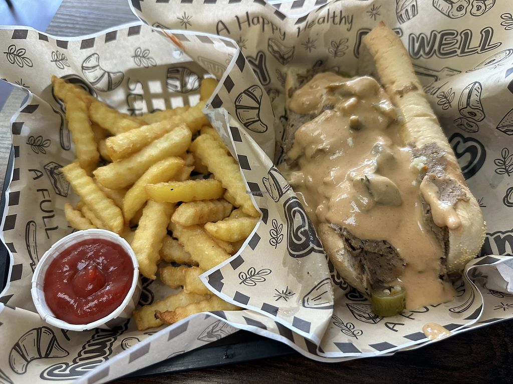 Plant based fish sandwich with fresh juice