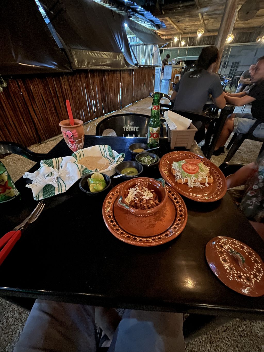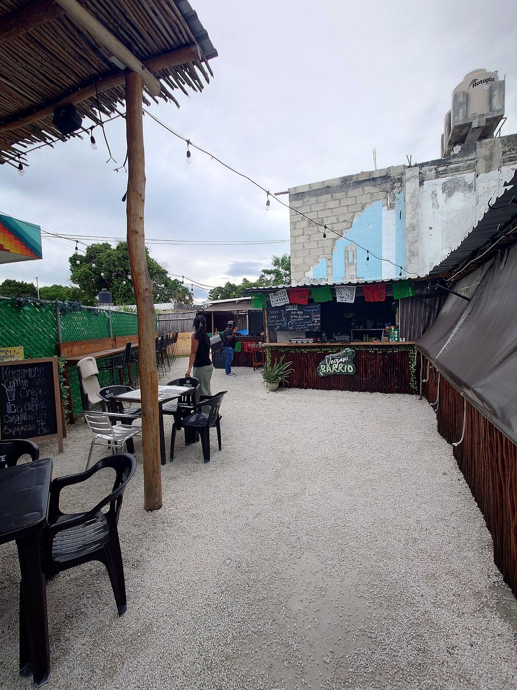 Vegan barrio is inside this food court area with a bar