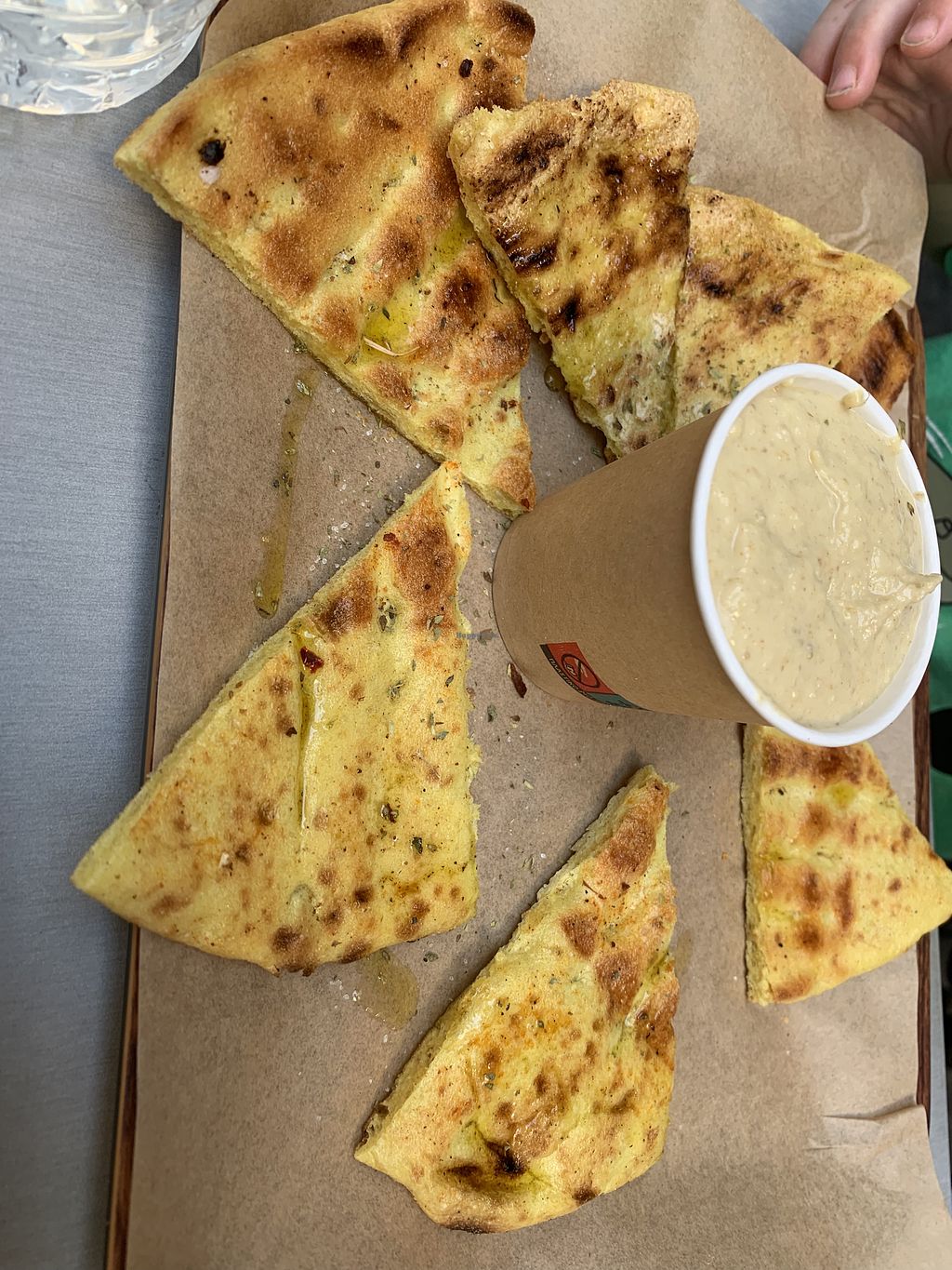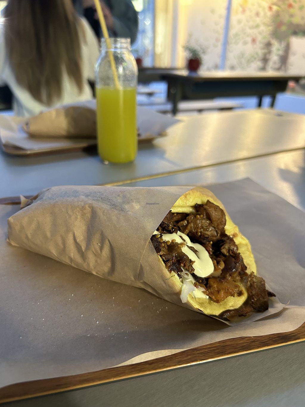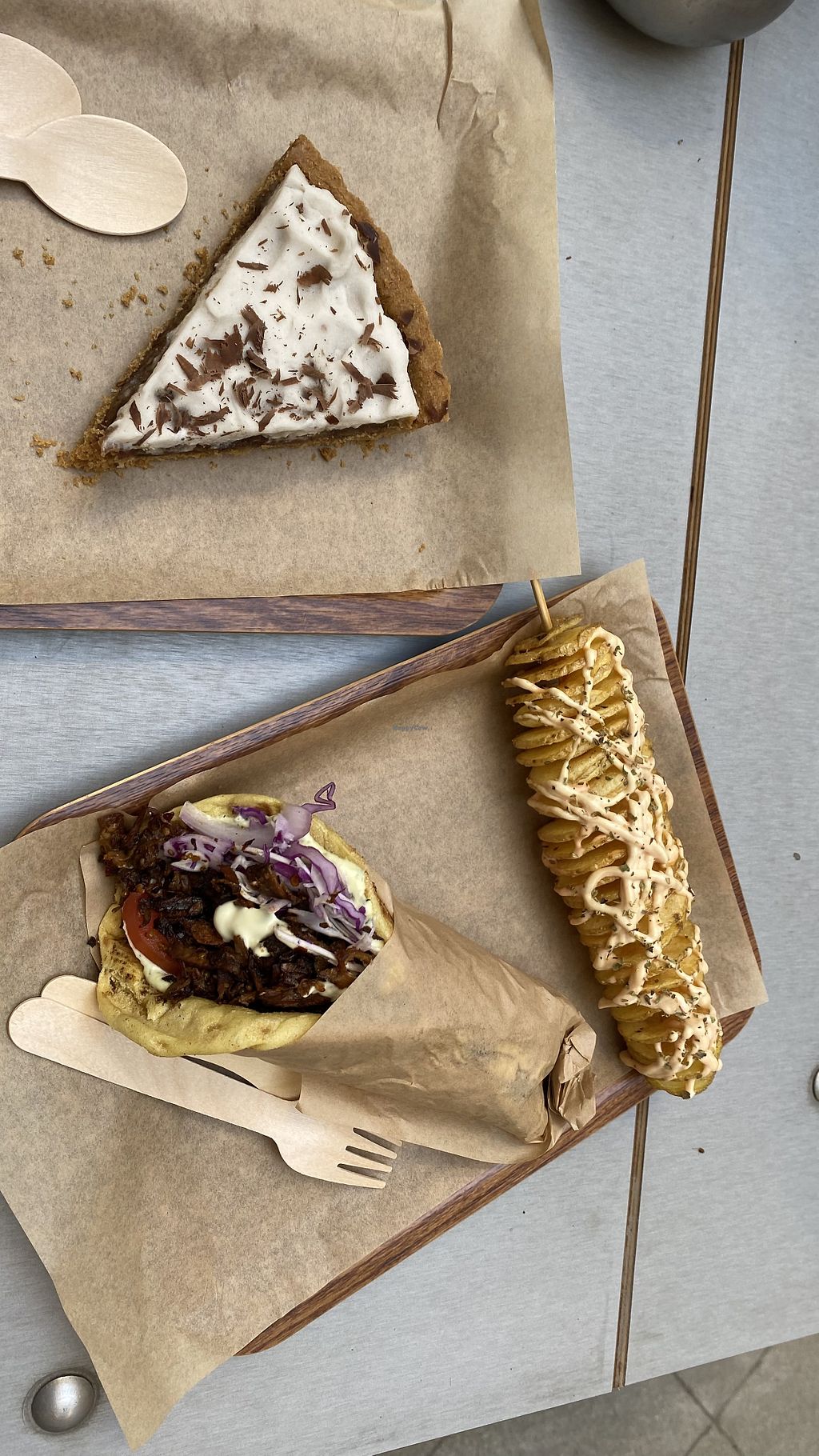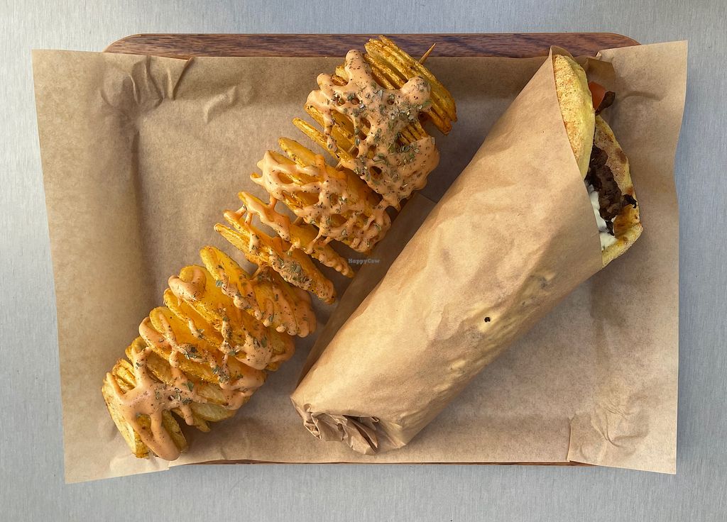 Spiral potato with Beat sauce (left, €2.80) and a space gyro (€4.30).