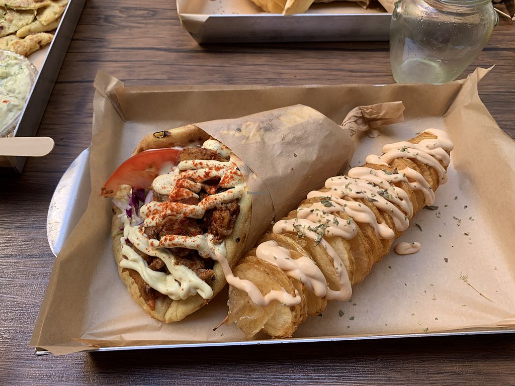 I have been coming to Greece to work for a while now and this was hands down the best vegan gyros I have ever tasted in my life, I did not want it to end. Will for sure be returning here for more. Really friendly staff also and you can fill your water bottle here also which is the dream- saving the world one plastic bottle at a time. Highly recommend this place.! Such good value as well, for a huge portion!