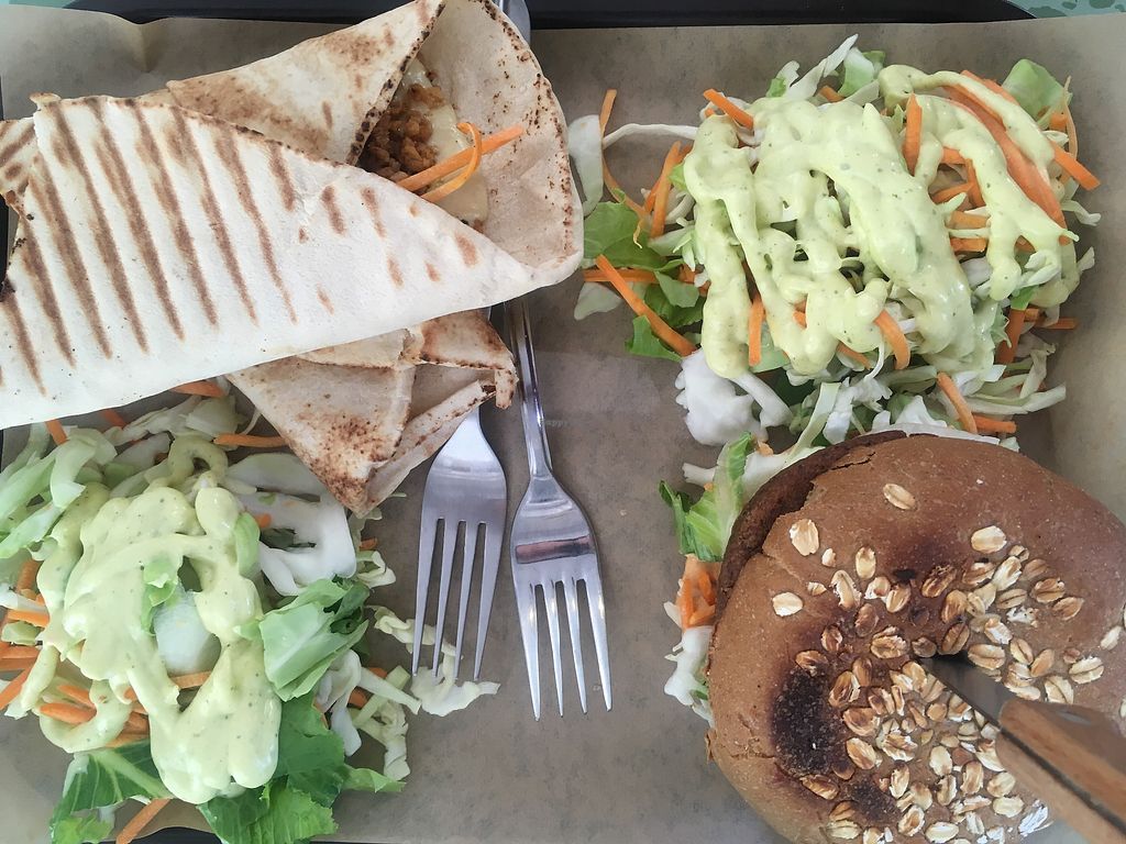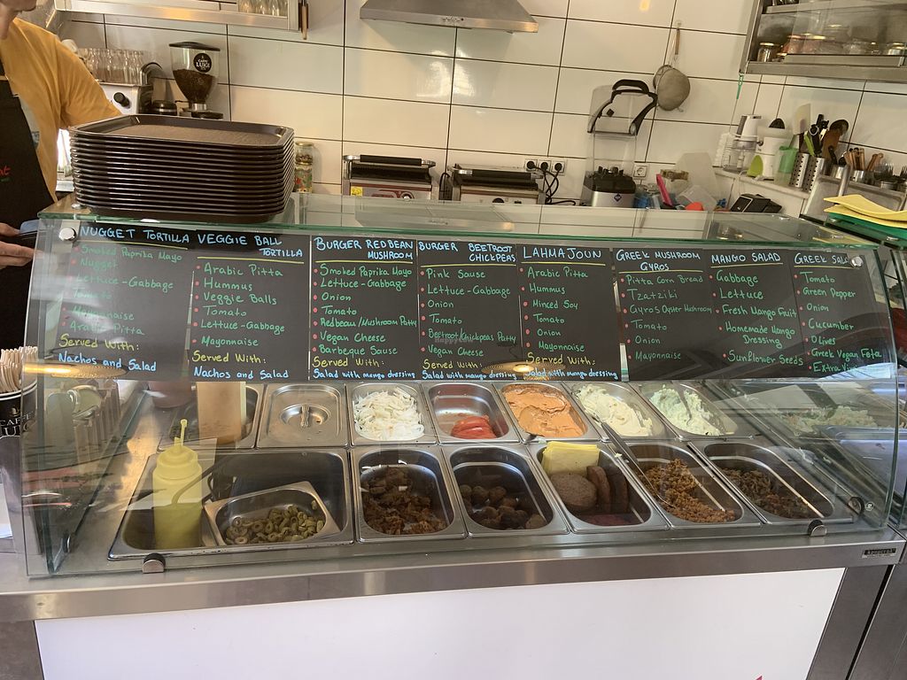 Nice fast food with lots of interesting options. We had the red bean-mushroom burger, which was absolutely delicious, and the lahamjoun, a very nice minced soy and hummus wrap. Very friendly and welcoming staff.